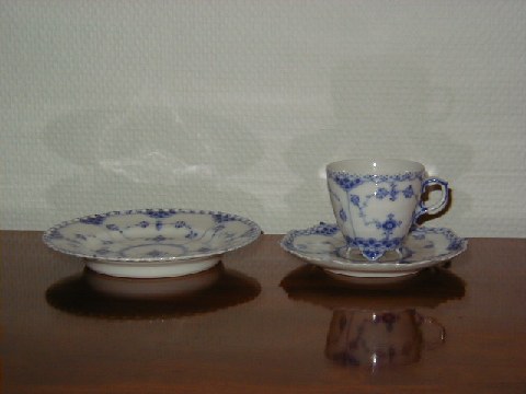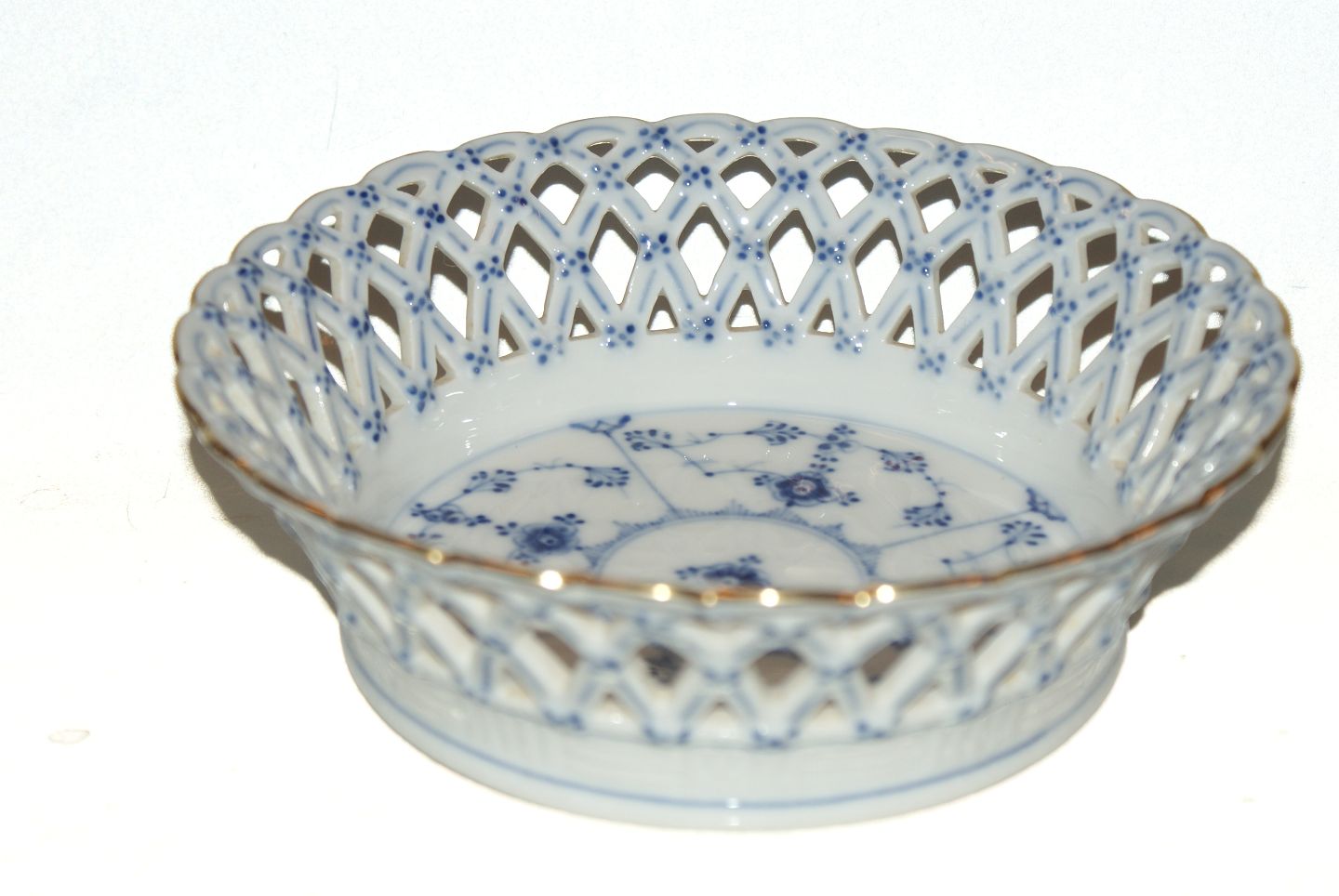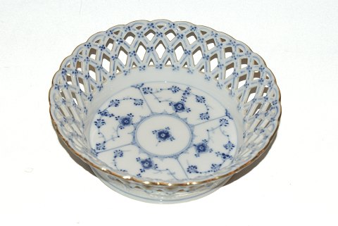 Royal Copenhagen Blue Fluted Full Lace with Gold Edge, Fruit basket, round. Produced formal 1923-1934 Decoration number 1/1054 1st quality Diameter 19 cm. Height 6 cm. Beautiful and well maintained.