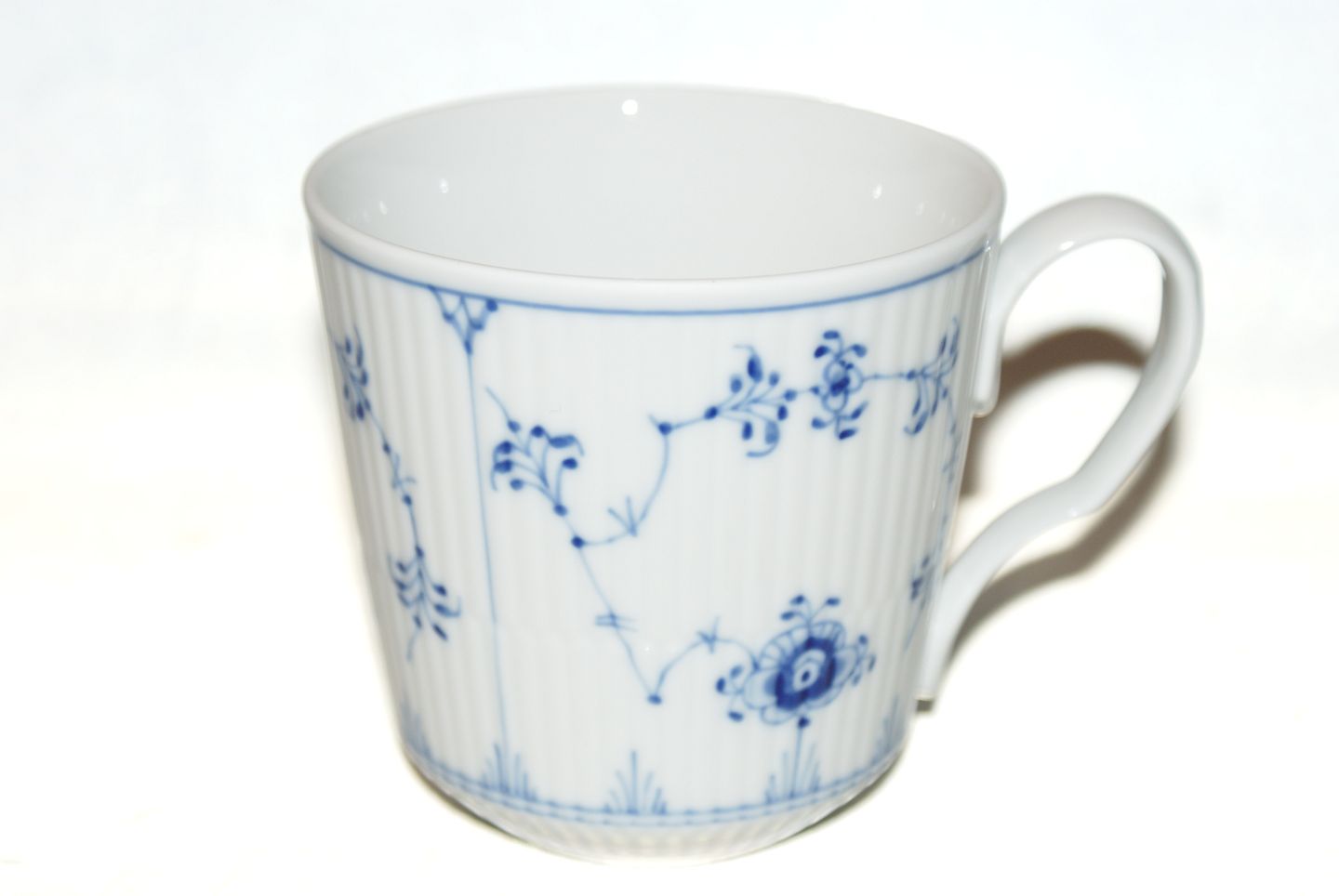Kongelig Musselmalet Riflet, KRUS Indhold 35 cl. Dek. nr. 102 Diameter 8,8 cm. Højde 9 cm. Perfekt stand