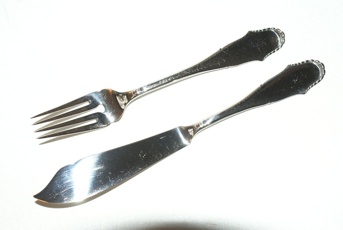 Christiansborg Fiskebestik, sølv Toxværd. Fiskegaffel 17,5 cm. Fiskekniv 20,5 cm. Flot og velholdt, Alt bestik er ny pudset