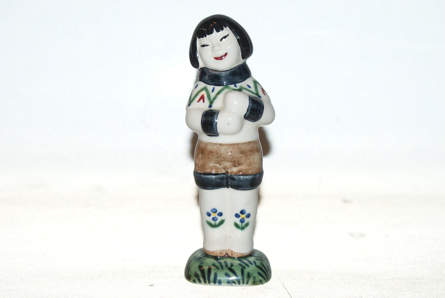 Aluminia Børnehjælpsfigur Grønlænderpige 1959 Højde 13,5 cm. Perfekt stand. Se Alumina figure: http://www.antik-huset.dk/produkter/figurer/aluminia-fajance-figurer.html