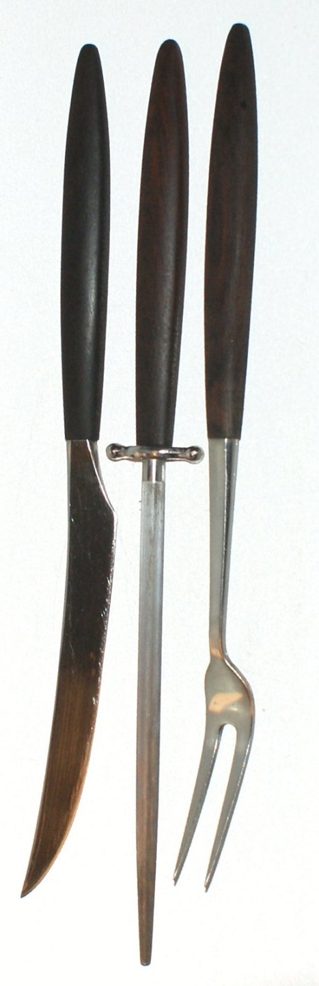 Carving Set with Rosewood Handle ØYO Norway Stainless Carving knife 34 cm. Carving fork 32 cm. Sharpening steel 35.5 cm. Well maintained set