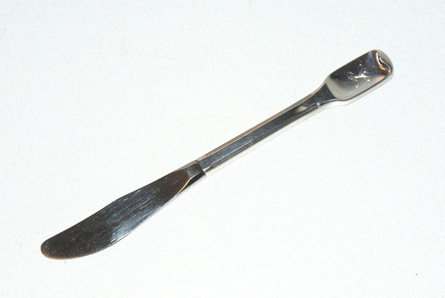 Barnekniv Old Danish Dansk sølvbestik med graveret intialer Horsens Sølv Længde 17,3 cm. Brugt og velholdt. Alt bestik er poleret og pakke i pose