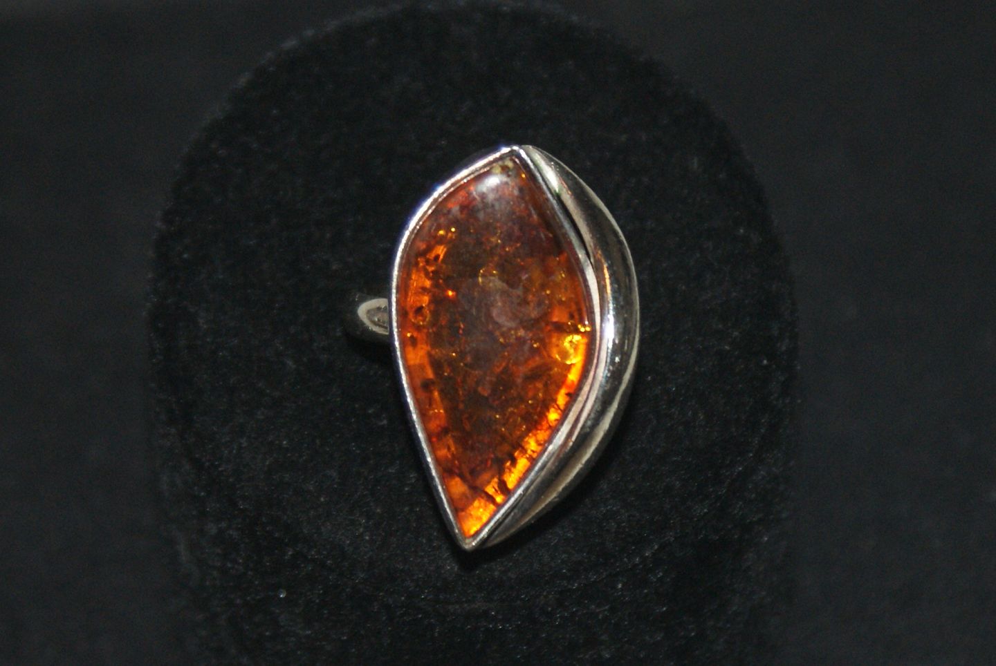 Finger ring with amber Sterling silver Stamp: TSD Producer: TS-Design, Randers Size 58, 18.46 mm. Beautiful and well maintained. See also our other website: http://www.antik-huset.dk/produkter/smykker.html