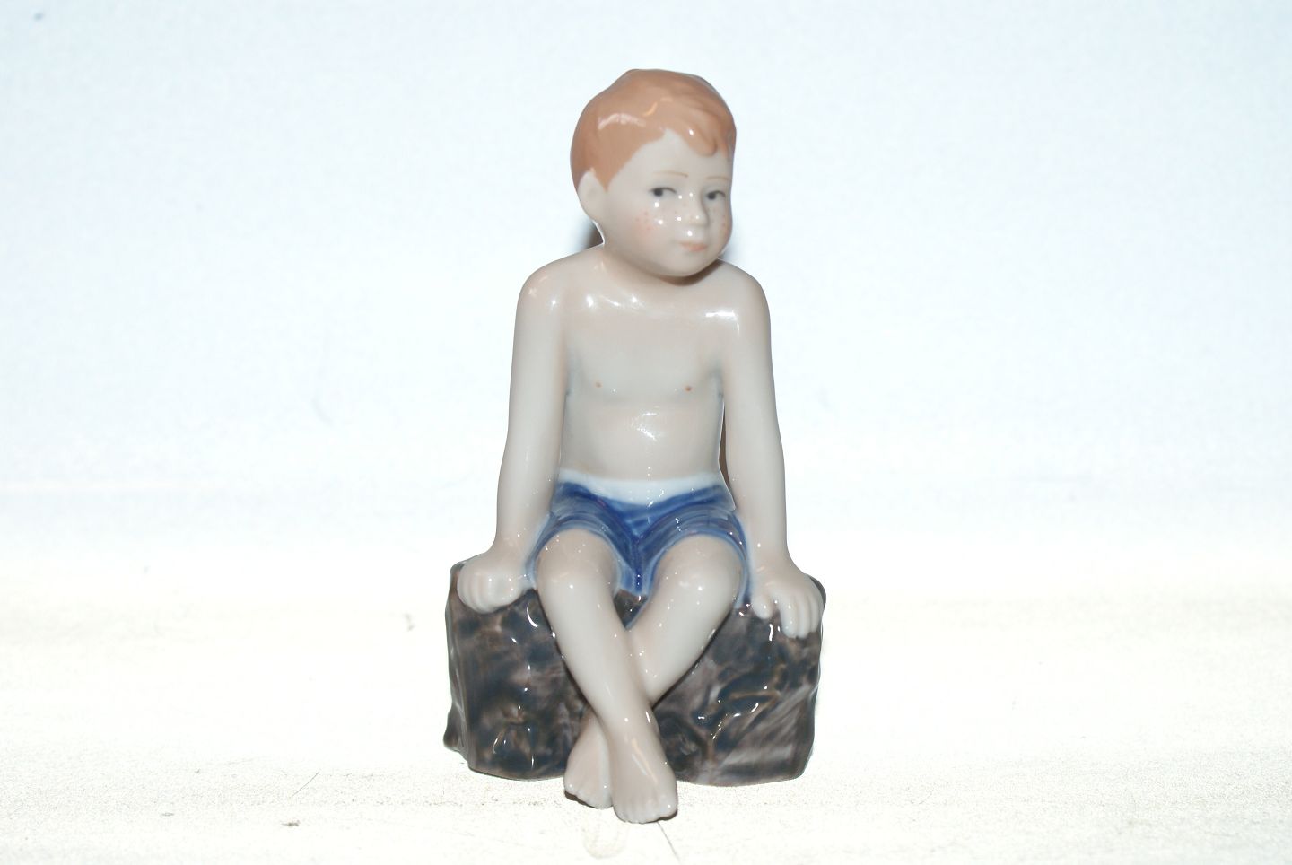 Royal Copenhagen, boy sitting on a rock Decoration Number 682 factory 1st quality Height 14 cm. Beautiful and well maintained