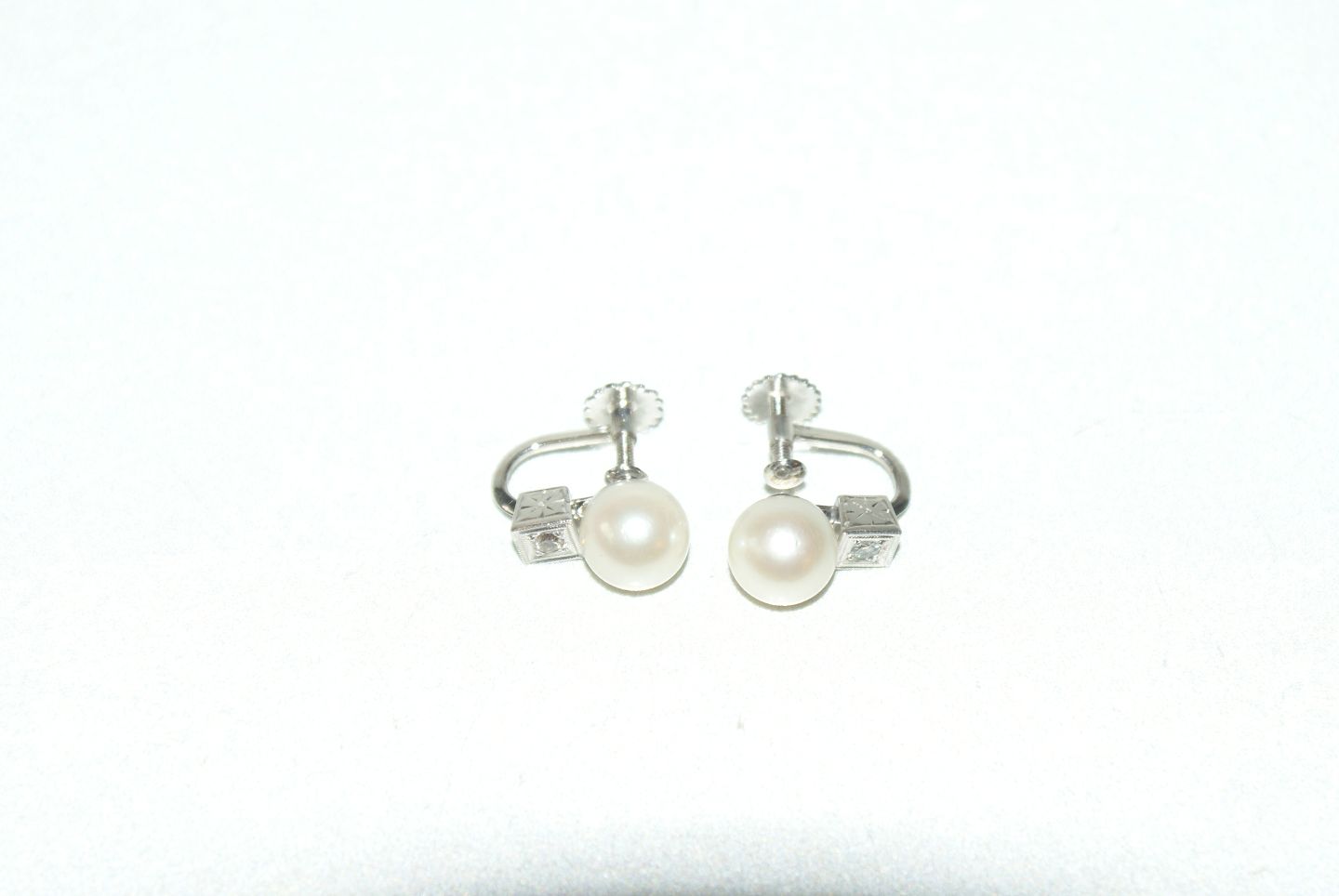 Elegant earrings with pearl in 14 carat white gold and with brilliant cut diamonds