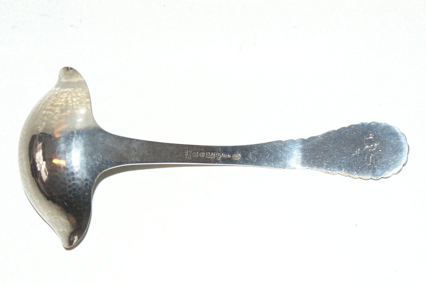Evald Nielsen Nr. 13 Sauceske m/ Gravering Længde 17,5 cm. Velholdt stand Alt bestik er polleret og pakke i pose