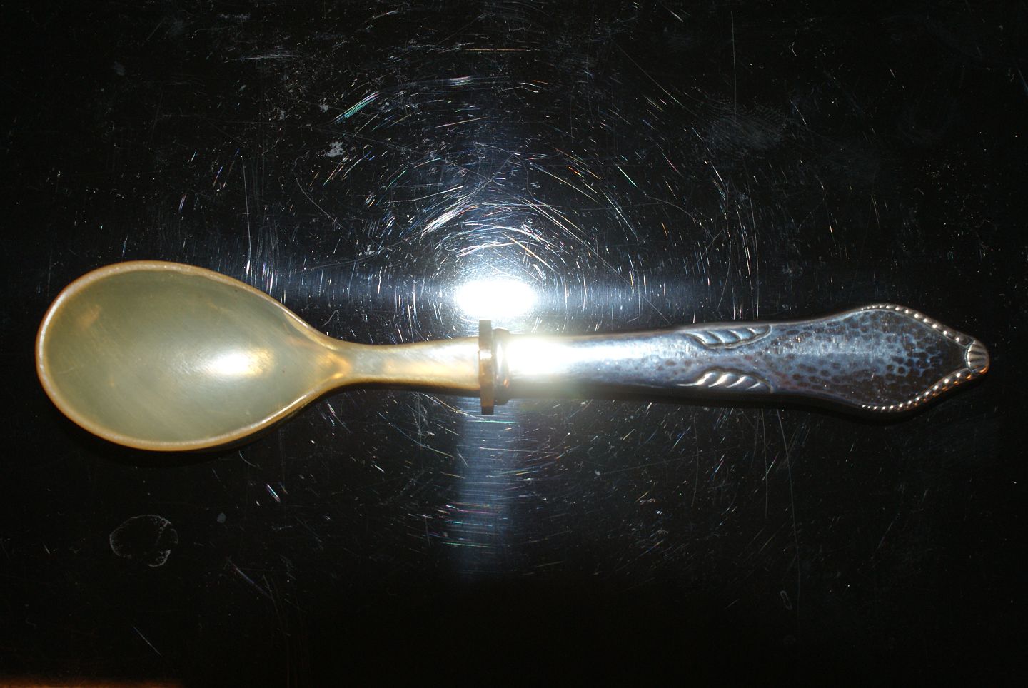 Amalienborg Silver Acid spoon with bone leaf Length 15 cm. Well maintained condition Polished and packed in bag