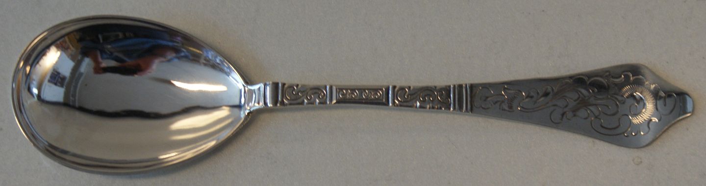 Antik Rococo, Sølv Middagsske med gravering på bag