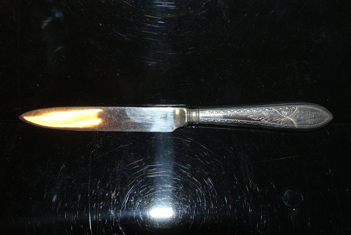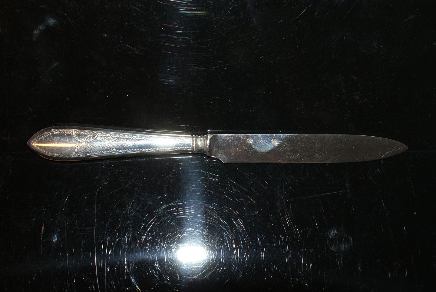 Fruit knife Empire Silver With initials Engraved year 1908 Length 17 cm. Well maintained condition Polished and packed in a bag