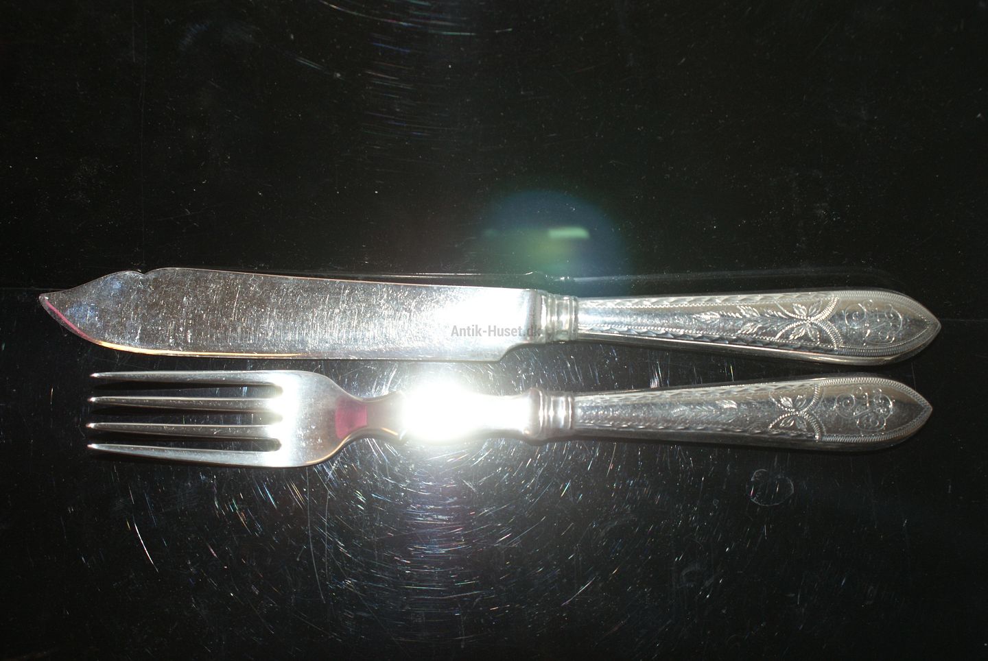 Fiskebestik Empire Sølv Kniv Længde 21 cm. Gaffel Længde 19,5 cm. Velholdt stand Poleret og pakket i pose
