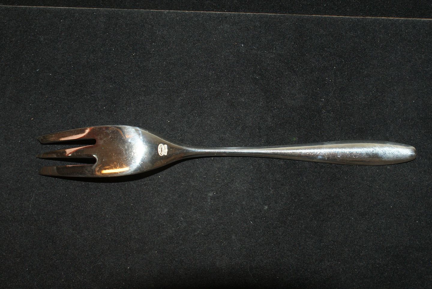 Kagegaffel Jeanne Sterling sølv Formgivet i 1956 af Jeanne Grut og produceret hos Slagelse Sølvsmedie A.C. Illum Længde 16 cm. Flot og velholdt. Alt bestik er poleret og pakke i pose