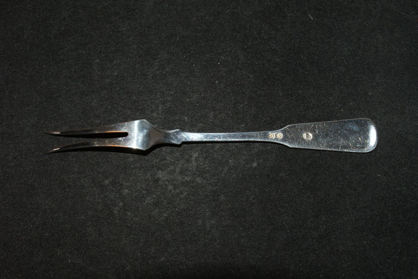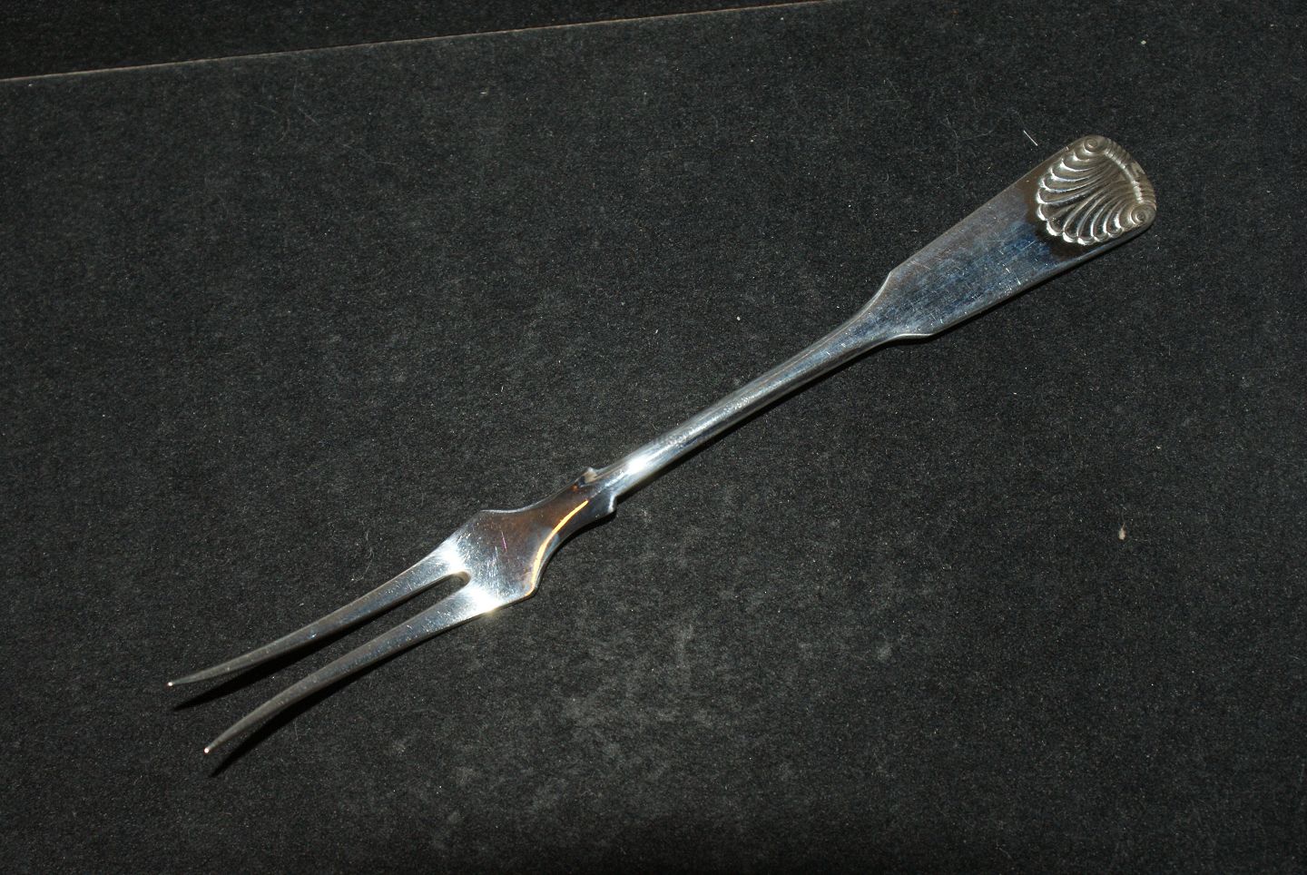 Pålægsgaffel Musling Sølv Fredericia Sølv, W & S.Sørensen. med flere Længde 13,5 cm. Poleret og pakket i pose Brugt, Flot og velholdt.