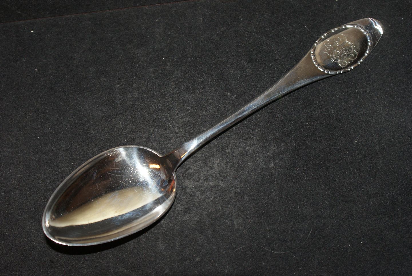 Dessertske / frokostske Medallion Sølv med graveret intialer Fredericia Sølv Længde 18 cm. Brugt og velholdt. Alt bestik er poleret og pakke i pose