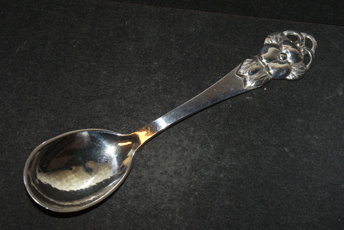 Dessert spoon / Lunch spoon Apple Blossom pierced Danish silver cutlery Length 16 cm. Well maintained condition All cutlery is polished and packed in a bag