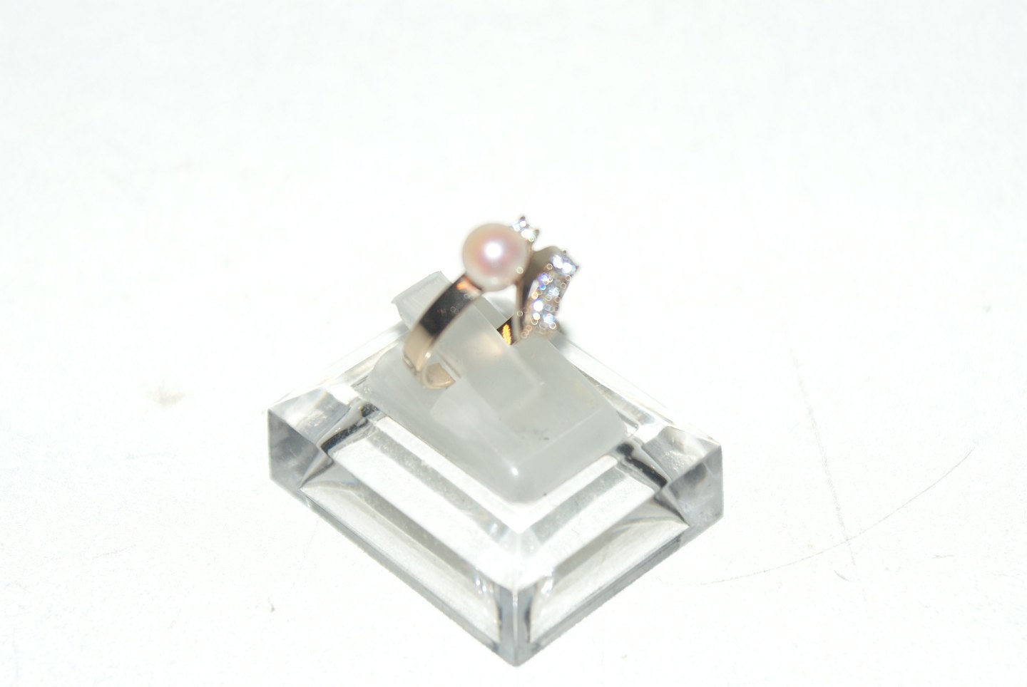 Elegant lady ring with pearl and zikons in 8 carat gold