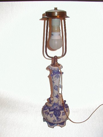 Royal Copenhagen Blue Fluted Full Lace Table Lamp with Putti Figurines. Decoration number 1/1006. From between 1894 and 1897. Factory First. Height 60 cm (34.5 cm). Perfect condition.