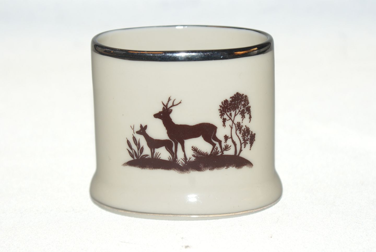 Bernstorff Copenhagen's porcelain painting Envelope vase the frame is known from approx. 1936, is a variant of vallø, decorated with deer motif, which is platinum edge Measures 5.5 * 6 cm Used but nice and well maintained condition