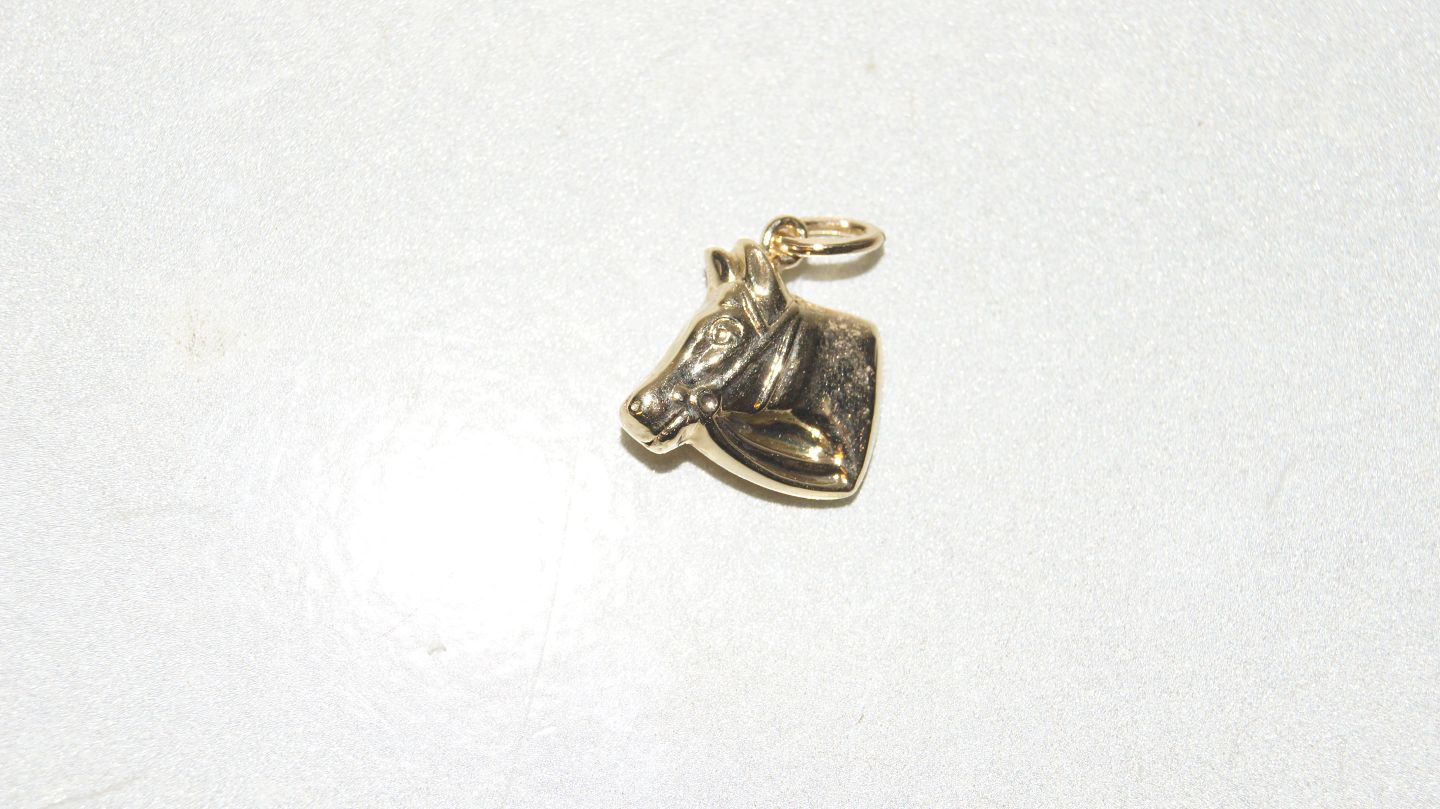 Hest Charms / Vedhæng i 14 karat guld Stemplet 585 Højde med øsken 17,94 mm Pæn og velholdt stand Smykket tjekket af guldsmed Varen findes ikke fysisk i butikken, kontakt os for fremvisning.