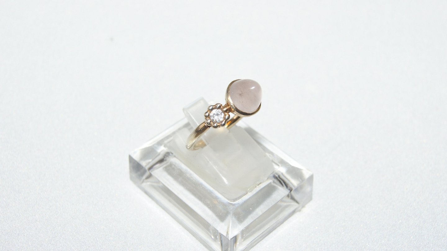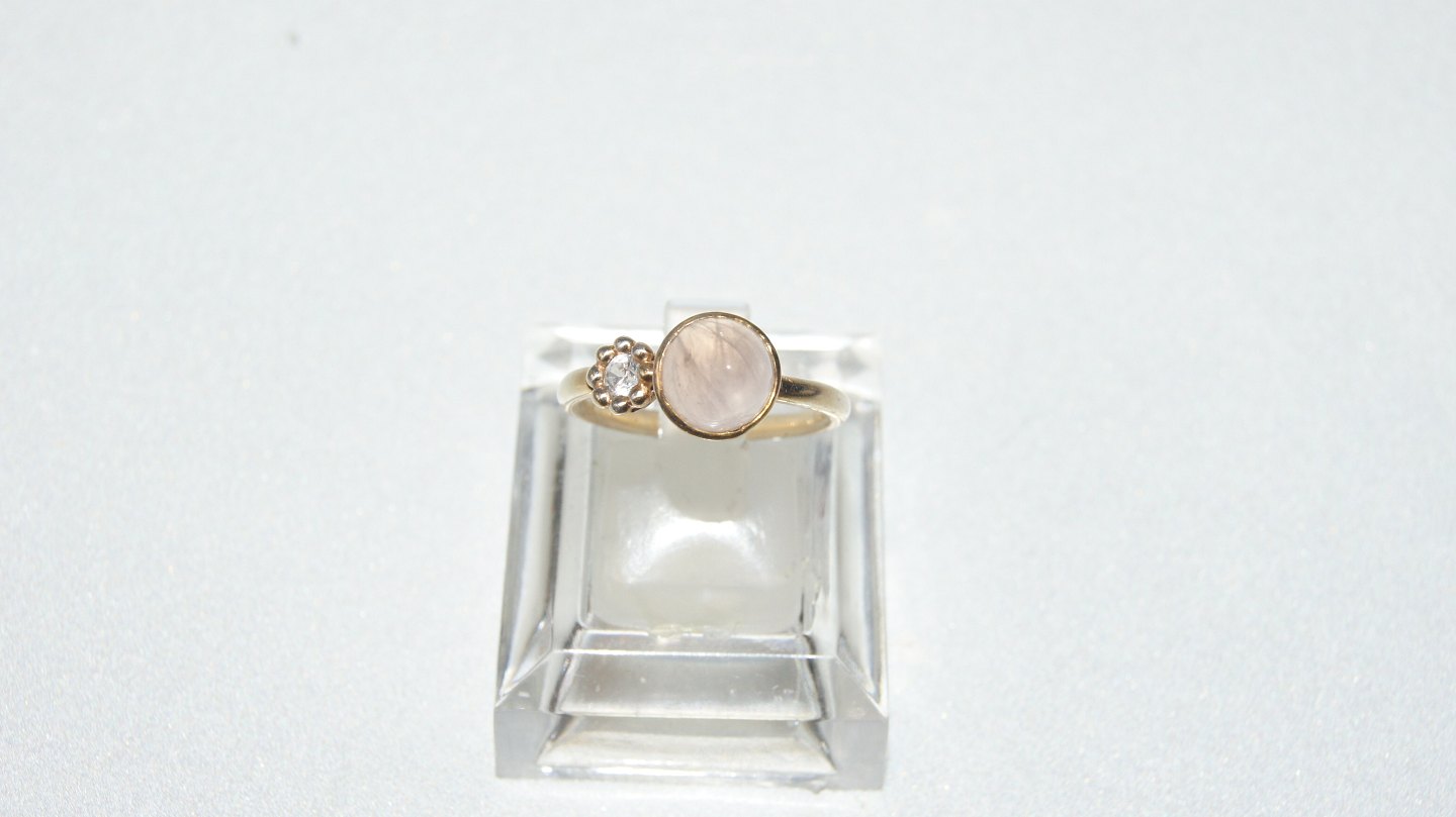 Elegant Ladies' Ring with Rose Quartz in gilded silver Stamped 925 Str 54 Nice and well maintained condition
