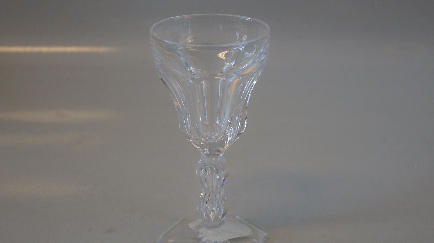 Lalaing krystal glas med facetslibninger, sekskantet fodplade.