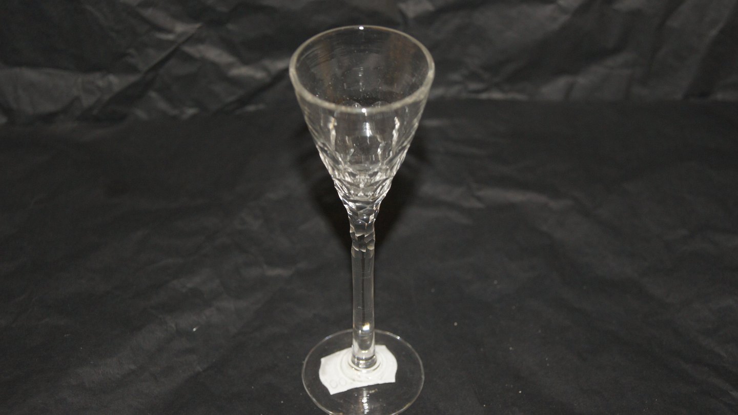 Snapseglas #Fiffa Fra holmegaard med skælslibninger på kumme og øverste del af stilk Højde 13,2 cm Pæn og velholdt stand