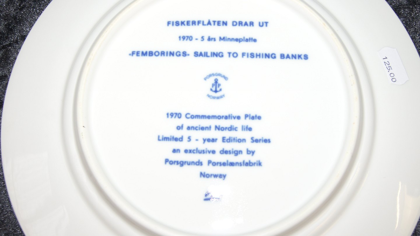 Fiskerflåten platte år 1970 mindeplatte Dek nr #13 Porsgrund Norway Måler 27 cm i dia Pæn og velholdt stand
