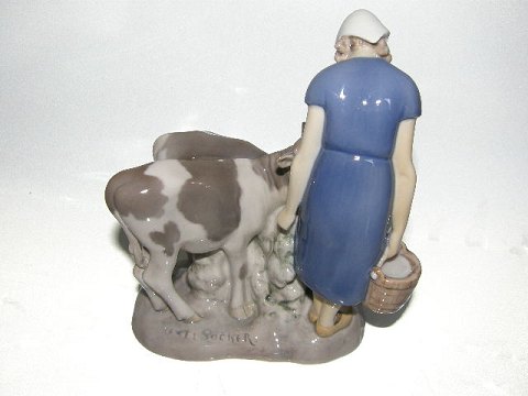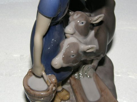 Large Bing & Grondahl Figurine, Farm girl with two calves.