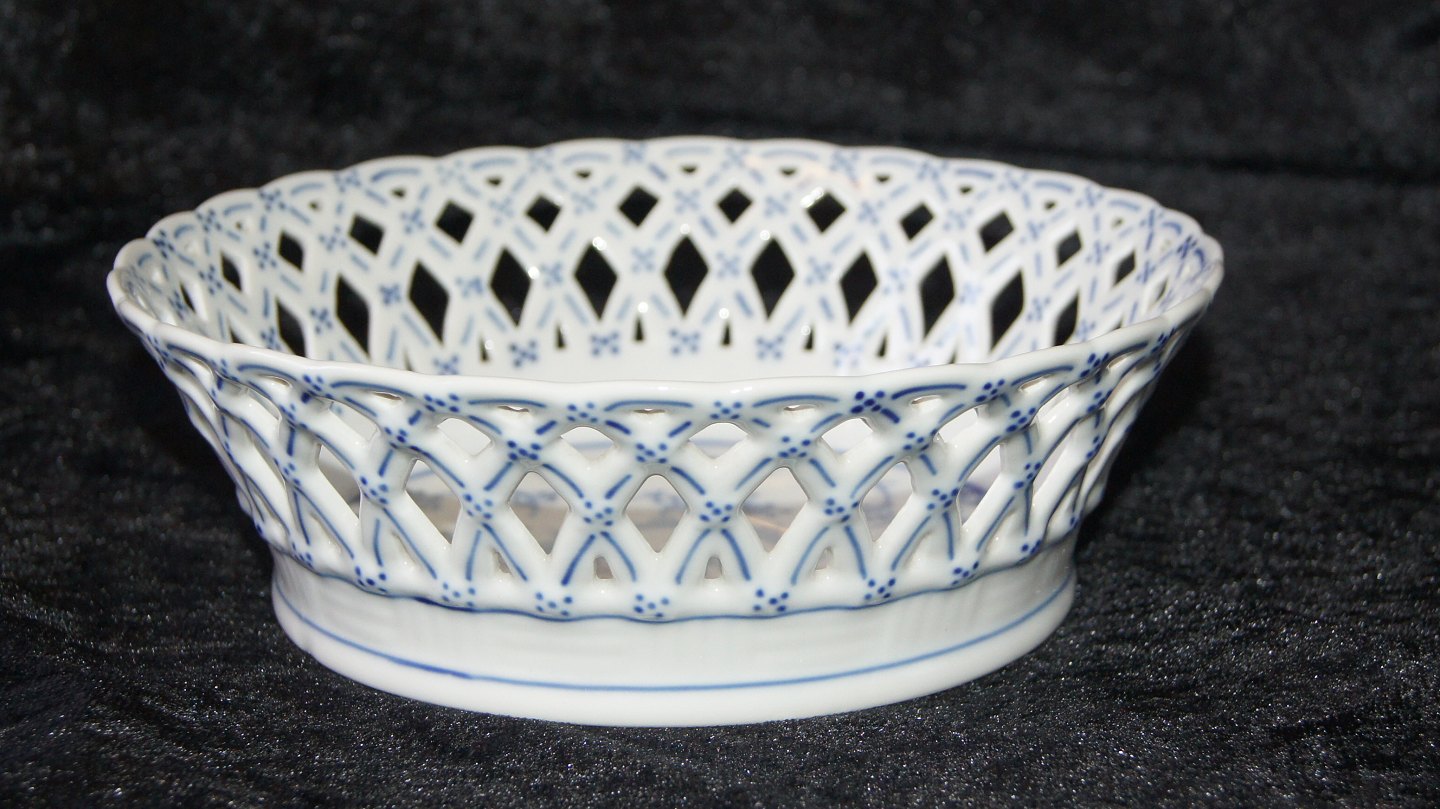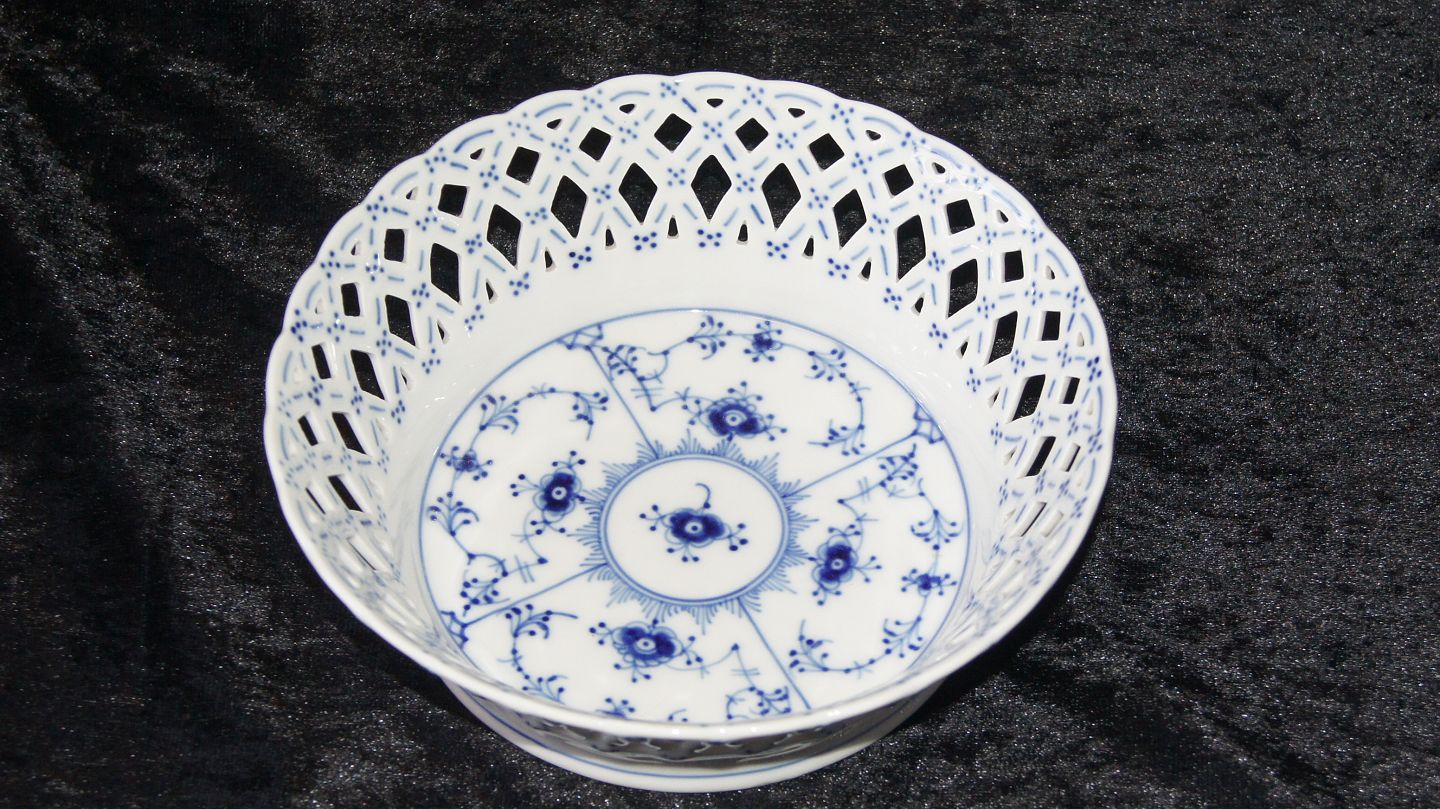Royal Copenhagen Musselmalet Helblonde Frugtkurv rund.