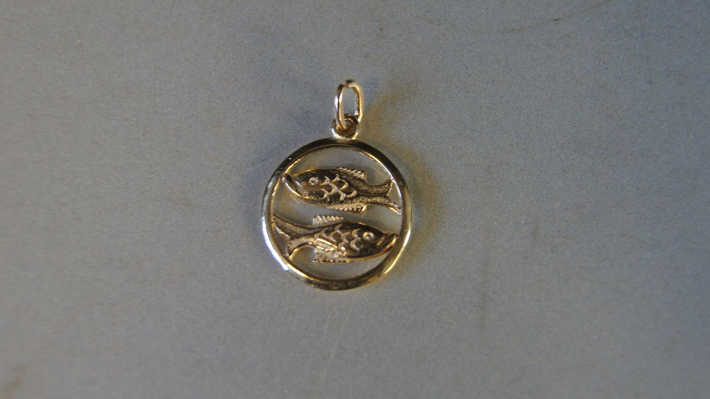 Zodiac sign, Pisces Pendant / Charms in 14 carat gold