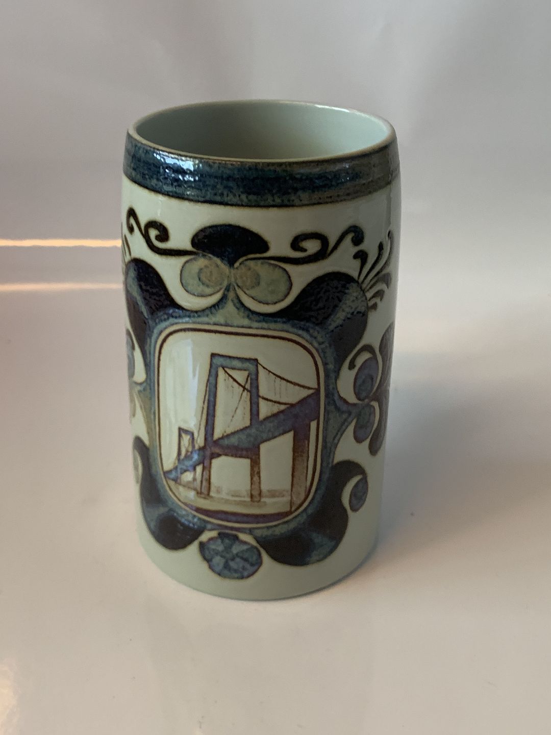 Mug Den nye lillebæltsbro 1970 Royal Copenhagen Faience Height 13.4 cm Nice and well maintained condition