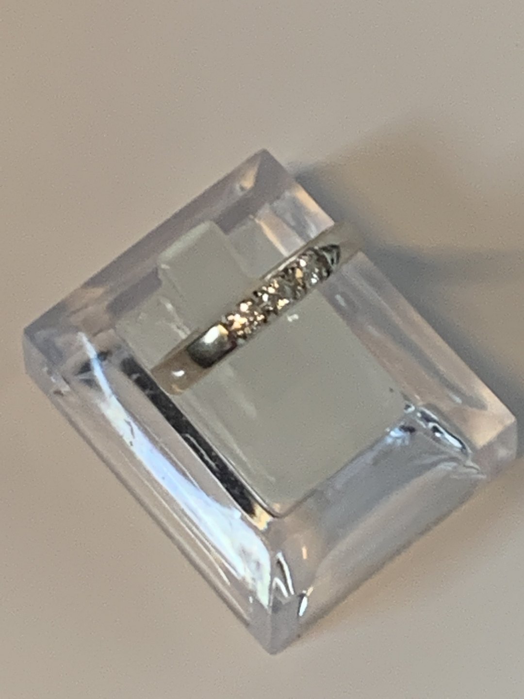 14 karat hvidguld, alliancering med brillanter Stemplet BLA 585 Størrelse 57 Tjekket af guldsmed Flot og velholdt stand. Varen findes ikke fysisk i butikken. Kontakt os for fremvisning