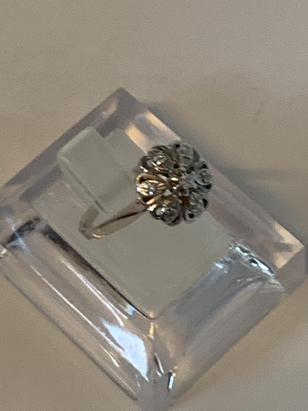 Ladies' ring with diamonds 14 carat white gold Stamped GIFA 585 Size 53 Checked by jeweler Excellent and well-maintained condition. The item is not physically available in the store. Contact us for a demonstration