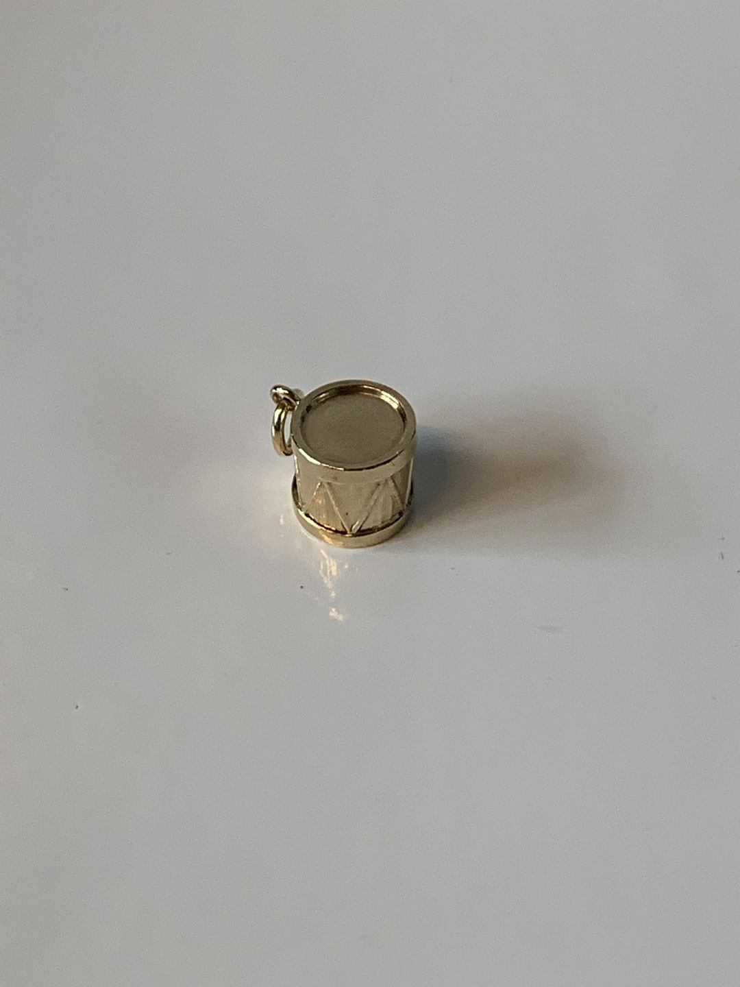 Tromme Vedhæng / Charms i 14 karat guld Stemplet 585 Højde med øsken 18,90 mm Pæn og velholdt stand Smykket tjekket af guldsmed Varen findes ikke fysisk i butikken, kontakt os for fremvisning.