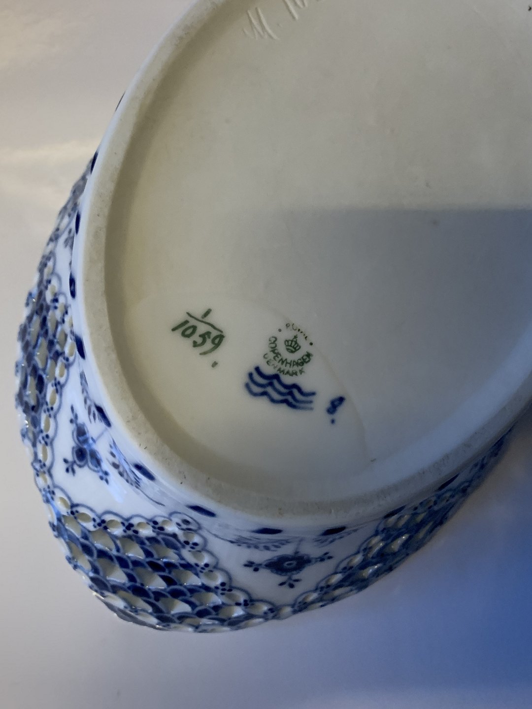 Royal Copenhagen #Helblonde mussel Frugtskål med hårdrevne ikke betydeligt Dek nr #1/1059 Længde 30 cm ca Højde 10,8 cm ca Pæn og velholdt stand
