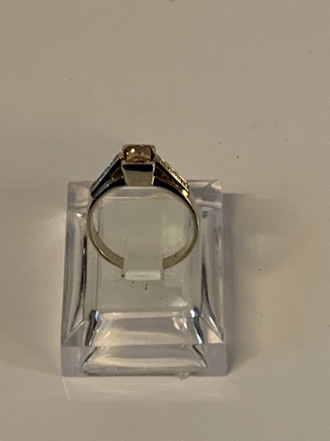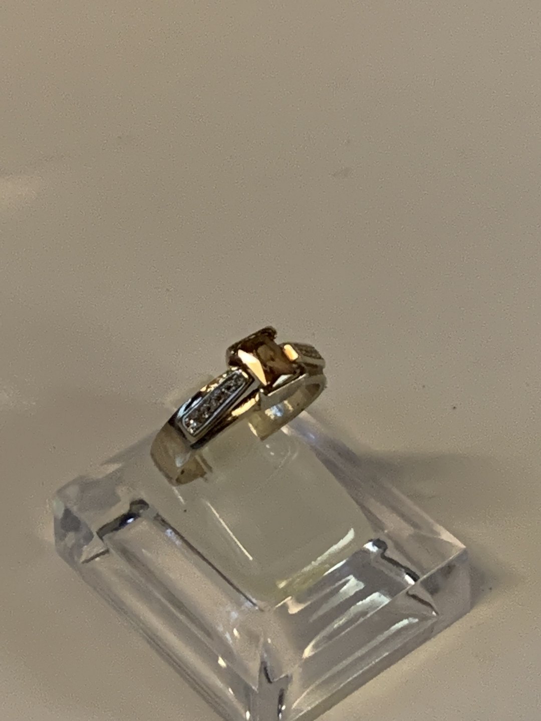 Ladies ring with diamonds and brown stone in 14 carat red/white gold