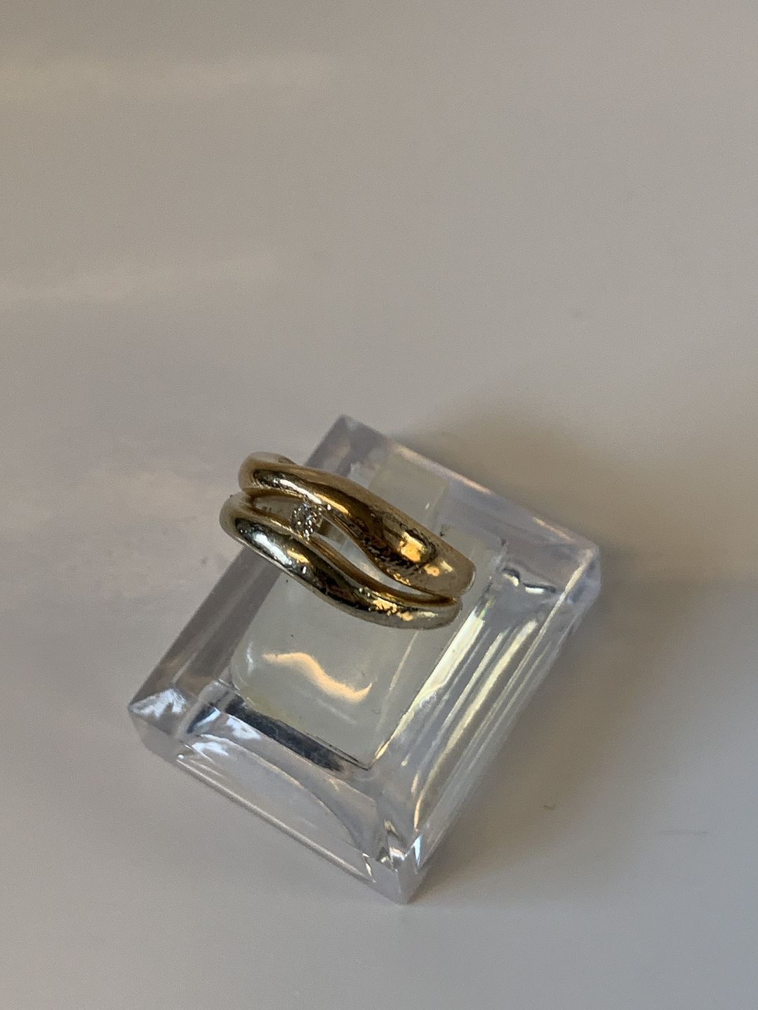 Dobbelt ring 2 farvet guld med diamant, 14 Karat Stempel: BLA 585 Størrelse: 54 / 17,19 mm. Flot og Velholdt. Varen findes ikke fysisk i butikken Kontakt os for fremvisning