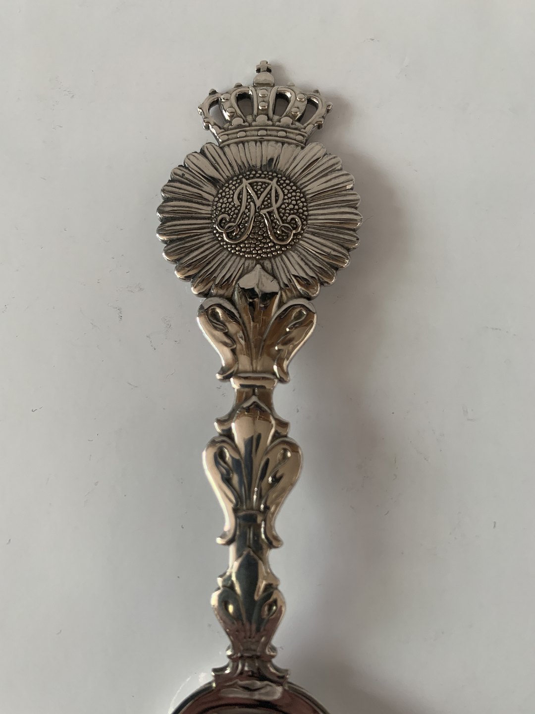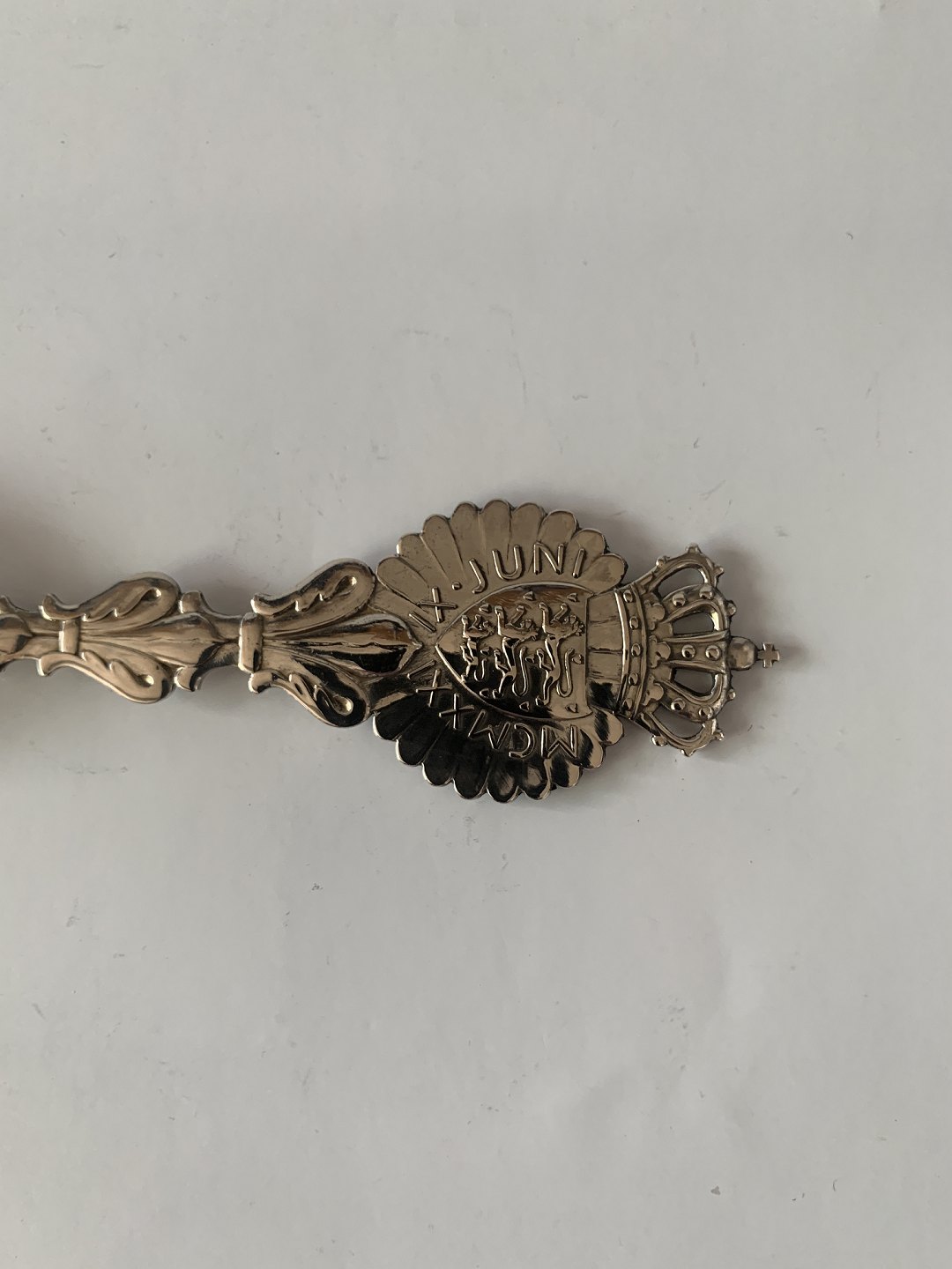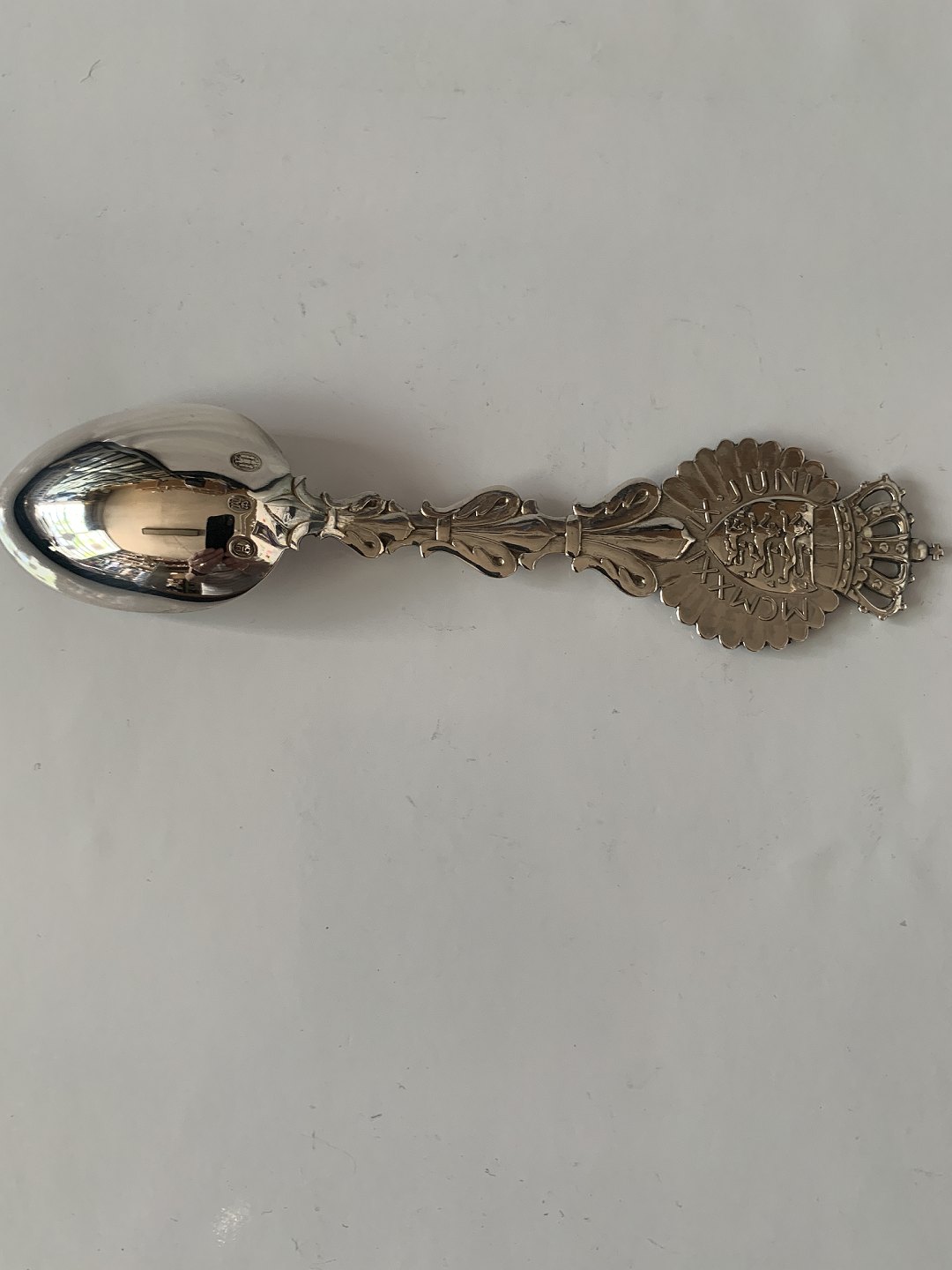 Anton Michelsen sterlingsølv, mindeske fra 1921. I anledning af Prinsesse Margrethe og René af Bourbon-Parma's bryllup den 9. juni 1921. Længde 15,5 cm. Flot stand