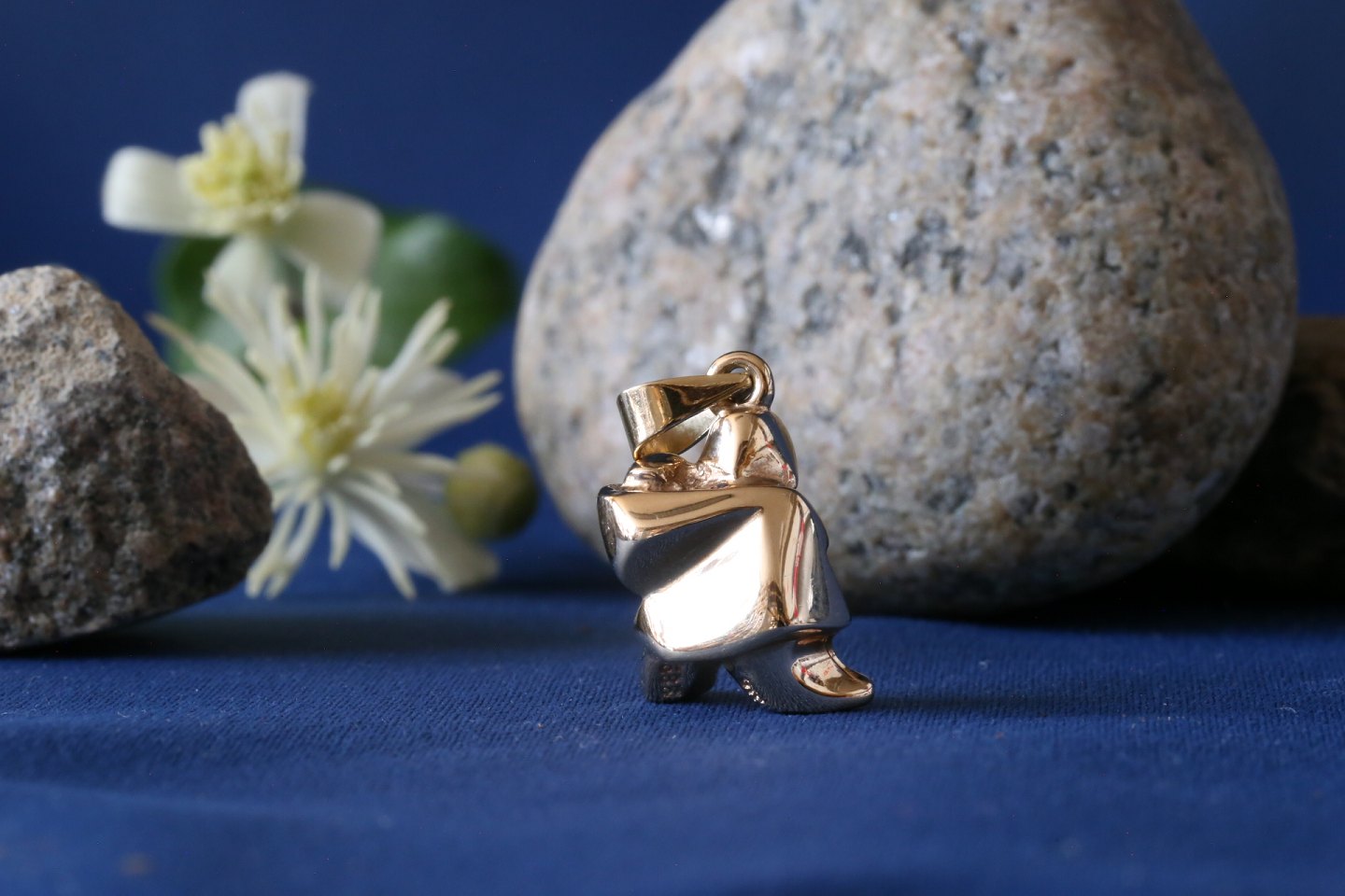 Smukt og anderledes vedhæng i 14 karat guld, formet som mor og barn. Vedhænget er udformet med detaljer, og meget smukt. Det kan bruges som både vedhæng i et guldarmbånd, eller som enkelt vedhæng i en guldkæde om halsen.