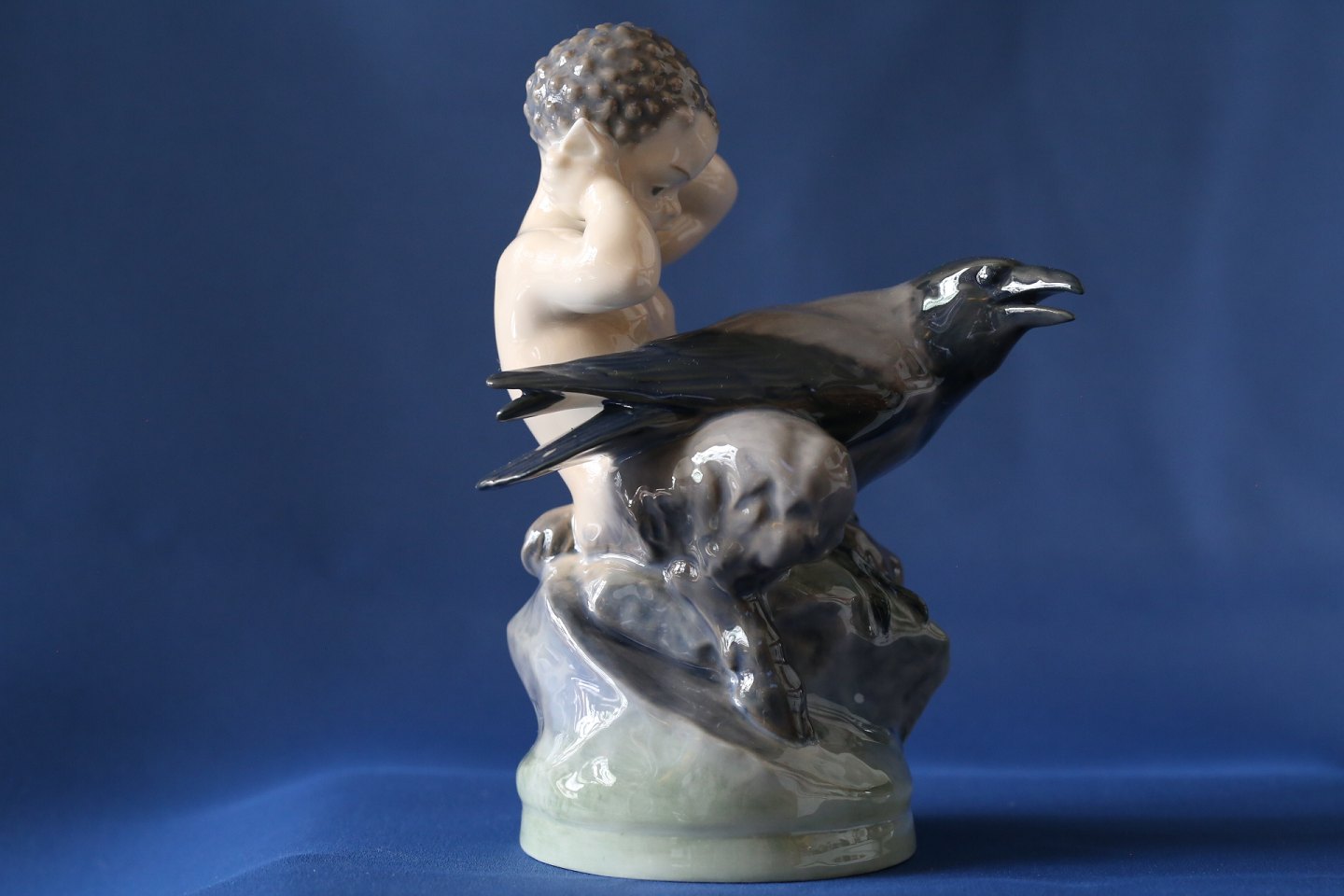 This beautiful porcelain figurine from Royal Copenhagen depicts Pan with a crow and was designed by Christian Thomsen. There are many nice details that make the figure a nice collector's item. The figure was produced in 1964.