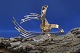 Meget flot og speciel broche i 14 karat rød- og hvidguld, med blå safir. Brochen er unik i dens buede levende form, og med indlagte blå safirer er den noget ganske særligt. Brochen er stemplet 585.
