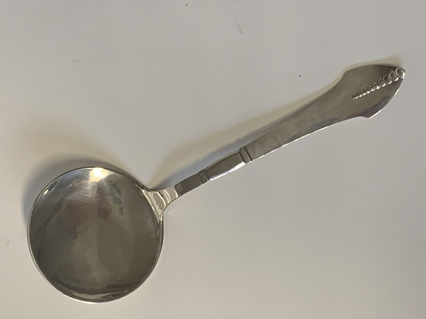 B 3. Silver Tartelet spade / Serving spoon Hansen & Andersen. Length 20.5 cm. Beautiful and well maintained The cutlery is polished and packed in a bag.