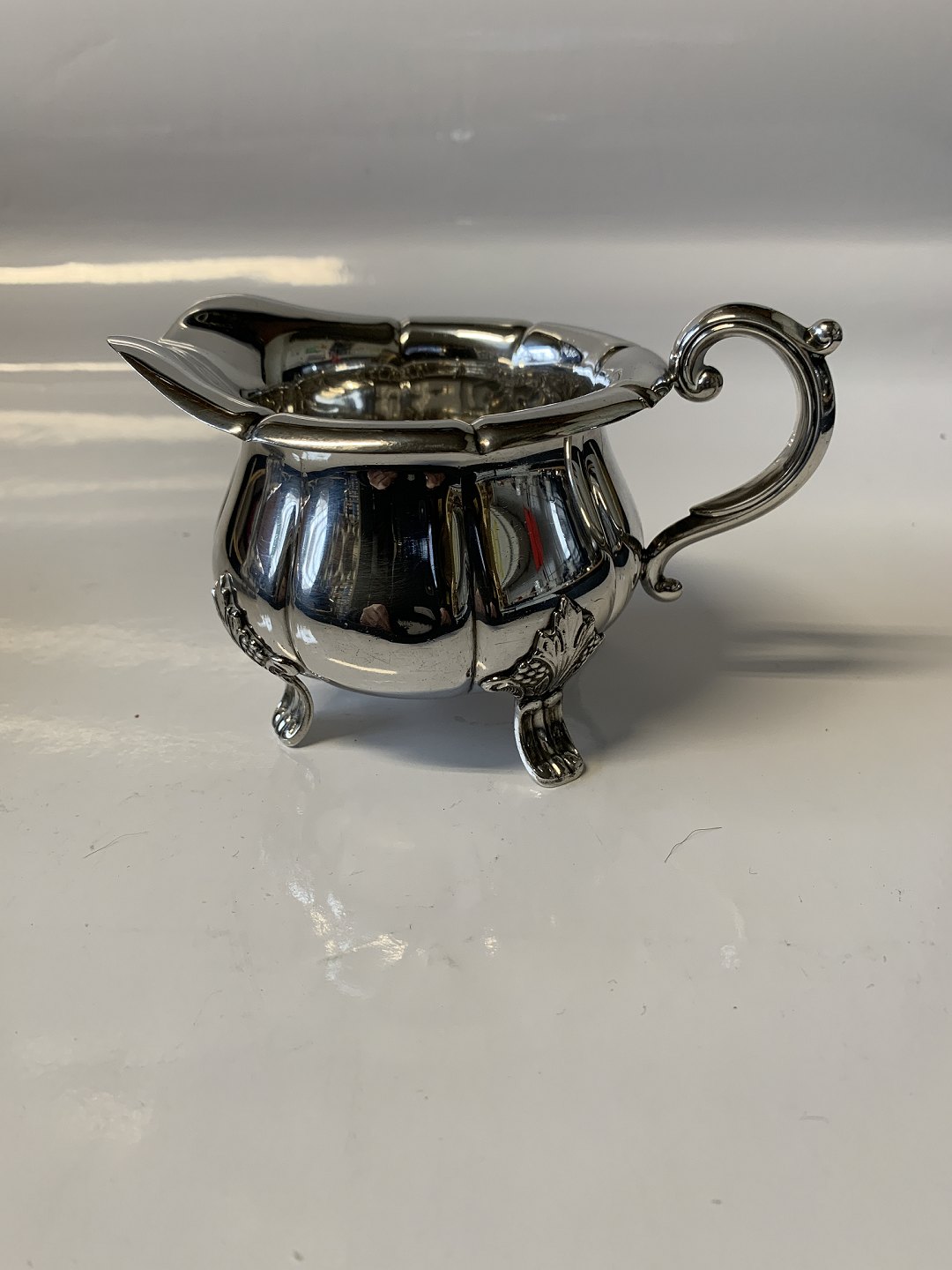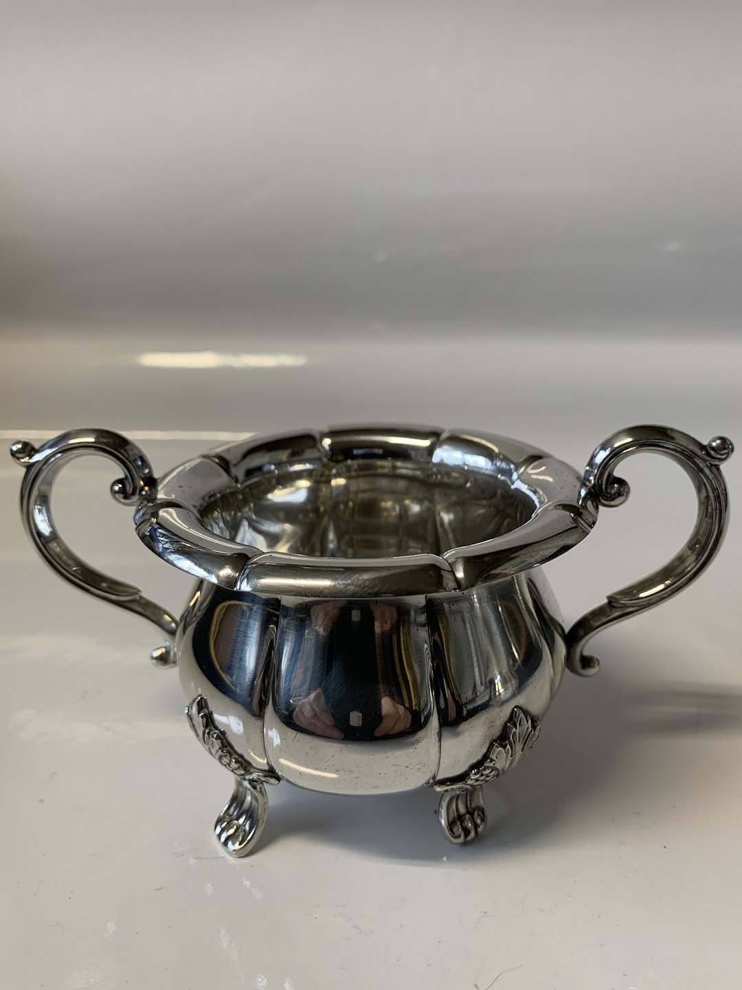 Dette smukke sæt, bestående af sukkerskål og flødekande, er eksklusivt udført i 925 sterling sølv, og et eksklusivt sæt. Sættet vil være luksus på bordet, og vil passe til langt de fleste porcelænsstel. Om du bruger Royal Copenhagen mega mussel, eller et andet stel, vil dette par afslutte det veldækkede bord med god stil.