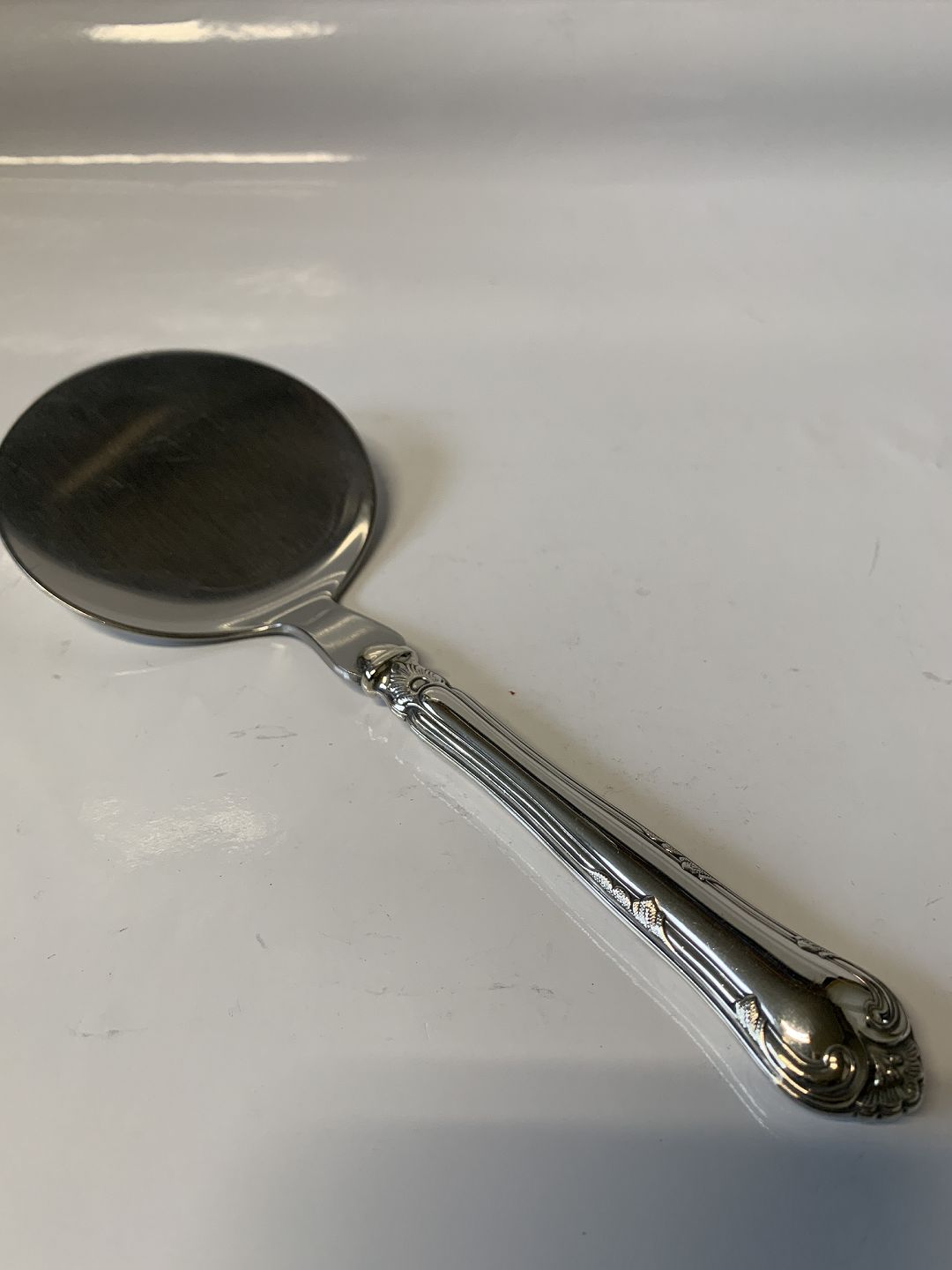 Herregaard Silver, Tartelet spade Tomato server w/ Stainless steel Cohr. Length approx. 19.5 cm. Well maintained condition All cutlery polished and bagged