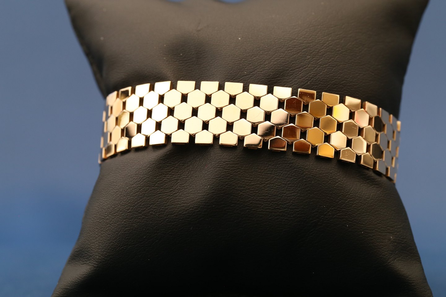 Beautiful and elegant gold bracelet with bicelle/cup pattern, with case clasp. The bracelet, with its classic pattern, is an ideal bracelet for both everyday life and parties. The many links mean that the bracelet lies softly over the wrist without cutting the skin. At the same time, a gold bracelet is a good investment in gold.