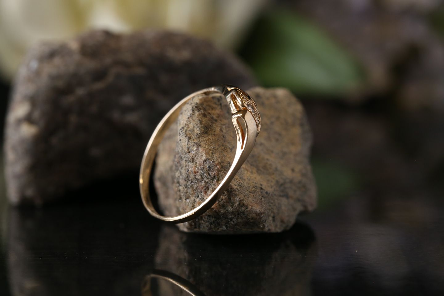 Unik guldring i 14 karat guld og hvid zirkon. Flot design og specielt look. Størrelse 56.