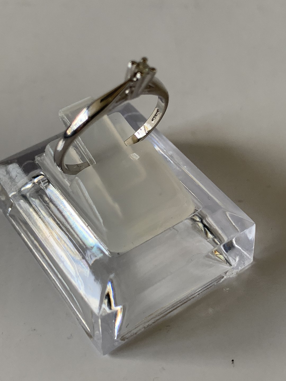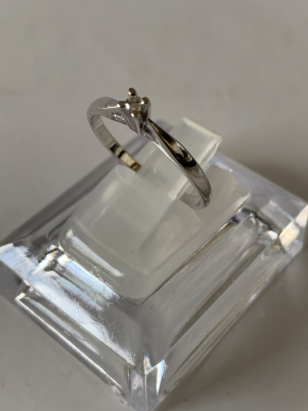 Damering med brillant i 14 karat hvidguld, str. 55, stemplet 585
