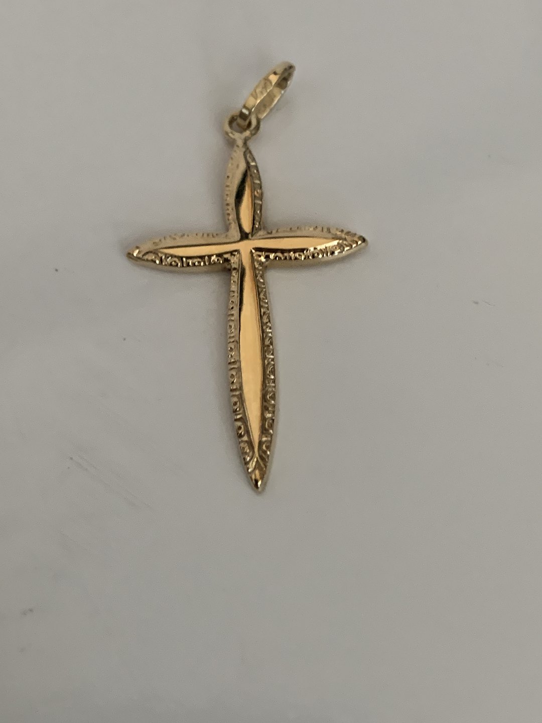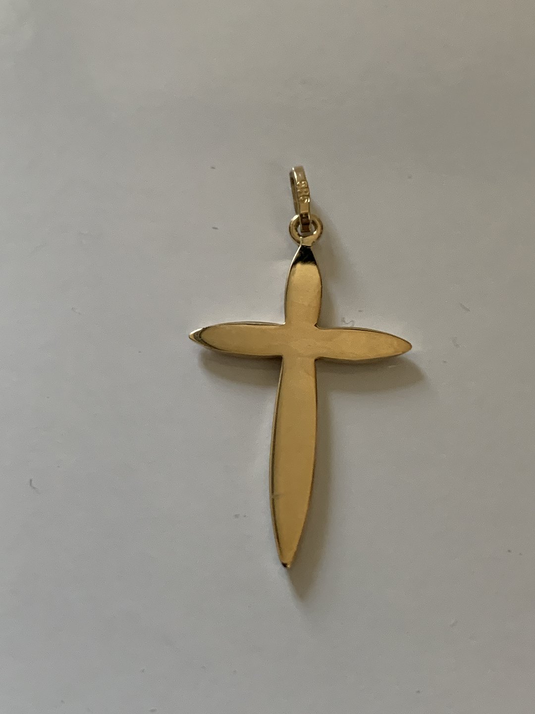Beautiful and detailed pendant in 14 carat gold. The cross is designed with beautiful soft shapes, as well as beautiful details and ornamentation. The pendant is an obvious gift idea for baptism or confirmation, and is equally suitable for both men and women.