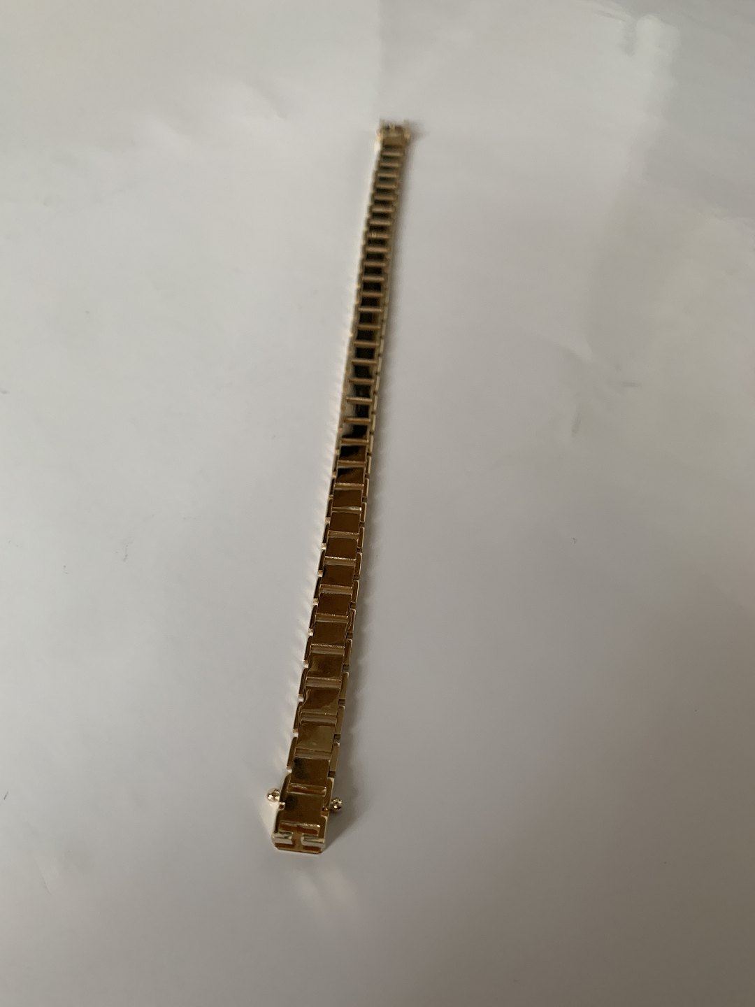 Beautiful and elegant gold bracelet with box lock. The bracelet is built up over many square links, so it is comfortable to wear on the wrist. The practical case lock makes the bracelet easy to use in everyday life.