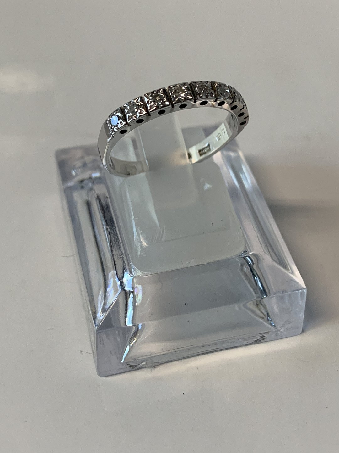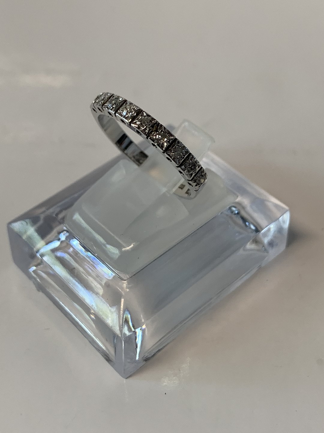 This very nice alliance ring has set diamonds, which is not often seen. This is why this ring is exceptionally exclusive. Still, it is simple, so you could say less is more. It is discreet, yet so exclusive.