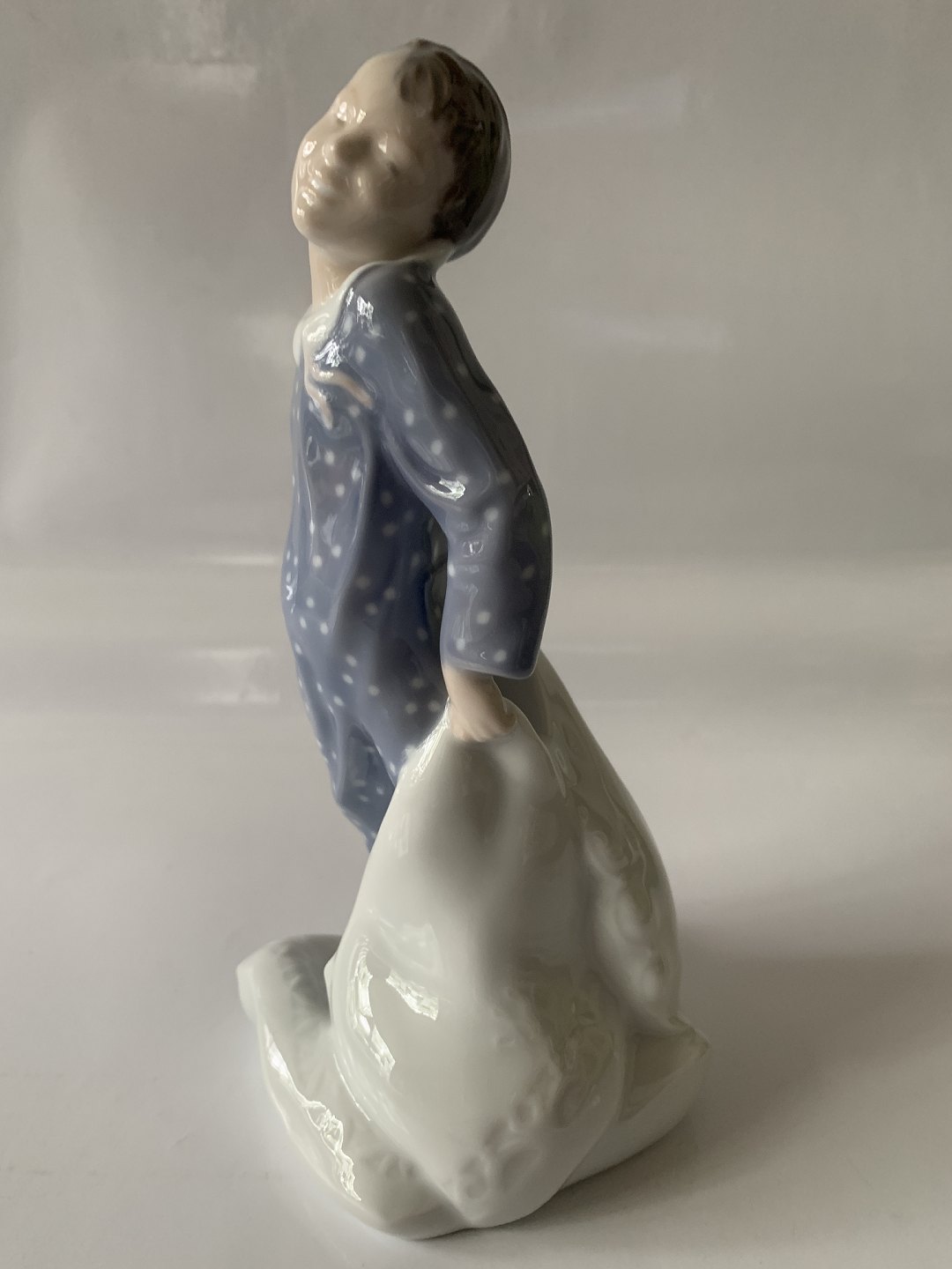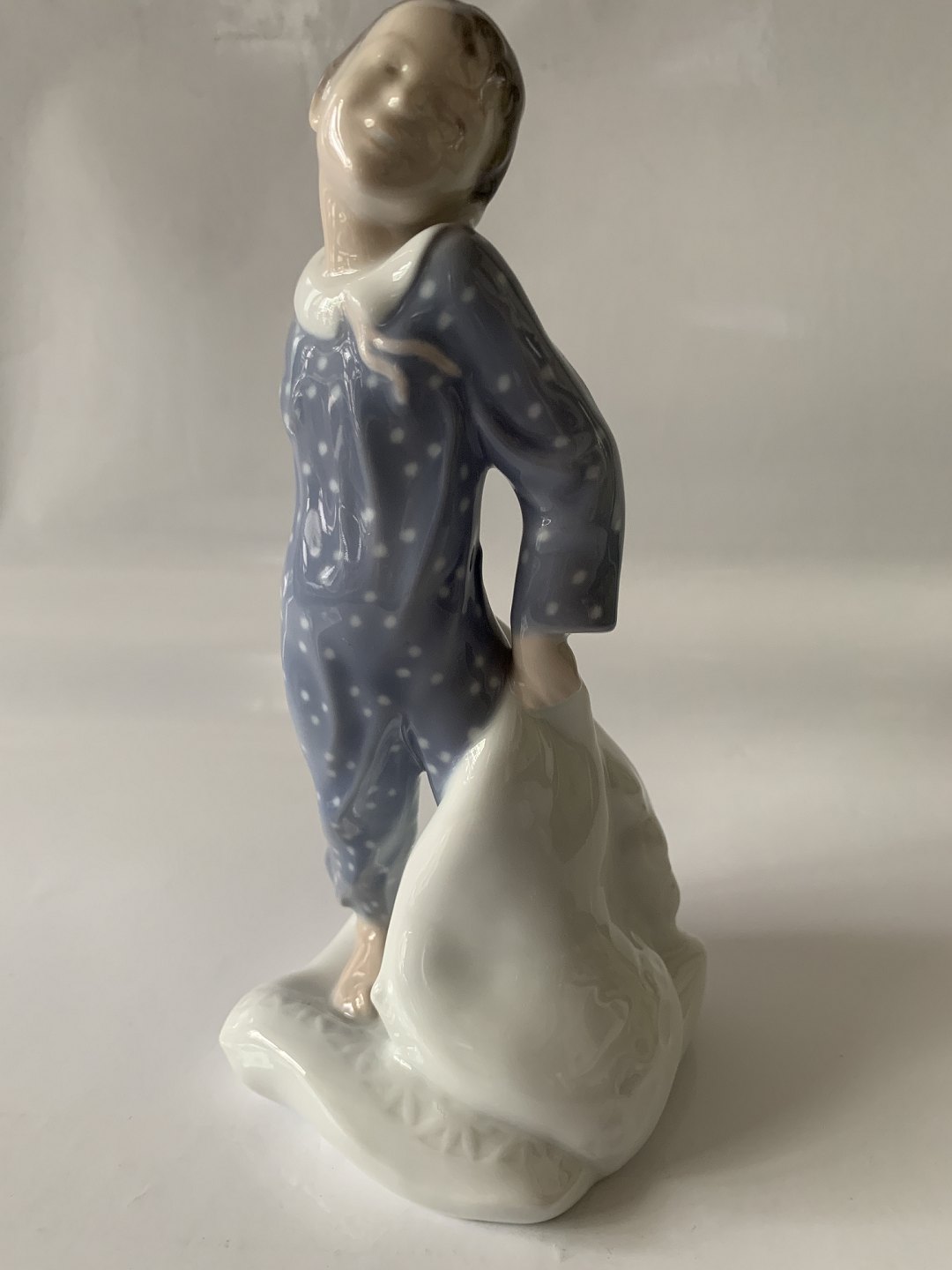 Beautiful and neat royal porcelain figure of a boy with pillow, from Royal Copenhagen, Holger Christensen.